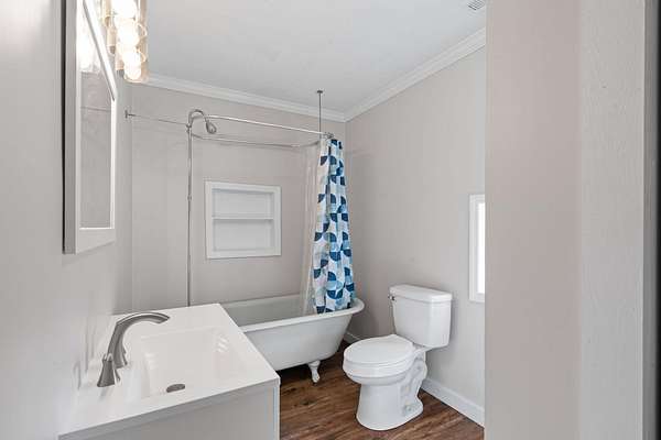 - Ceiling Fan(s), Crown Molding, Soaking Tub