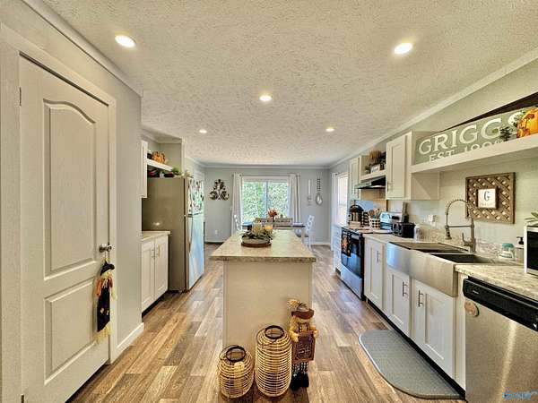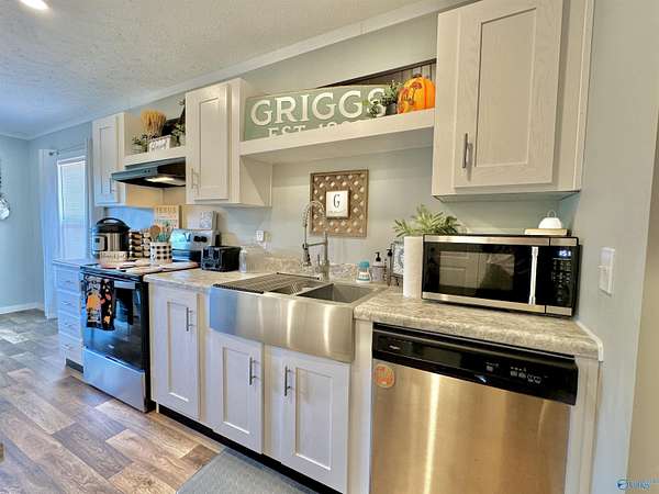 This 4 bed/2 bath 2023 mobile home is absolutely beautiful & sits on 3.75 acres. The view from the back is breathtaking. The open concept living area is designed to maximize space & light creating a warm & inviting atmosphere. The kitchen features new appliances, large island & ample cabinet space making it perfect for both everyday meals & entertaining guests. The master bedroom is a serene retreat featuring a spacious walk-in closet & en-suite bath w/a soaking tub & separate glass-enclosed shower. The additional 3 bedrooms are generously sized offering plenty of room for family, guests, or a home office. This is the perfect place to create lasting memories with loved ones. Perm. Foundation
