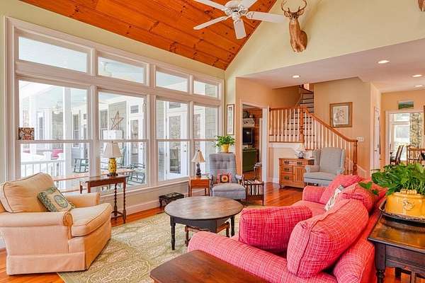 Tucked away on over 14 private acres in Spartanburg, this one-of-a-kind Cape Cod-style home offers space, character, and craftsmanship you won’t find just anywhere. A winding driveway sets the tone as you approach the home, creating a sense of privacy and arrival. Inside, you’re welcomed by a classic layout with an office to the right and a formal dining room to the left of the front entry. The home features multiple living spaces, including a cozy front den with stunning heart pine walls and a gas log fireplace. Adding to the home’s rich history, the heart pine flooring was reclaimed from beams at The Citadel following hurricane damage—bringing a rare and meaningful story into the home’s design. The main-level primary suite offers a private retreat with a jetted tub, walk-in shower, and a spacious walk-in closet. The kitchen is both functional and inviting, featuring a gas range, dishwasher, built-in desk, wet bar area, and an eat-in breakfast space. Just off the kitchen, a bright sitting room opens to a large porch overlooking the backyard—perfect for relaxing or entertaining. A laundry room with utility sink is also conveniently located on the main floor. Upstairs, you’ll find four additional bedrooms and two bathrooms with Jack-and-Jill layouts, offering flexibility and comfort. The basement expands your living space even further with a large living area featuring a wood-burning fireplace, along with a one-car garage, utility room, and workshop area. Built with a durable metal frame and lovingly maintained by its original owner, this home is as solid as it is special. Outside, enjoy a patio with multiple gathering areas, several outbuildings, and a scenic creek running through the property—ideal for those seeking room to roam, work, or unwind. This is a rare opportunity to own a truly distinctive property with acreage, history, and endless potential—all just minutes from the conveniences of Spartanburg.