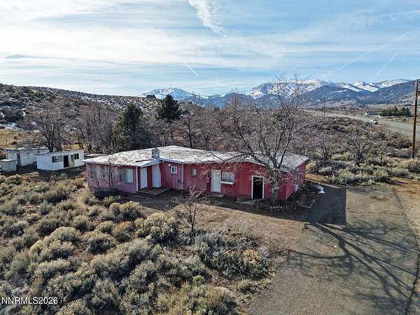 4.64 acres with panoramic valley and Sierra mountain views along iconic Mount Rose Highway. Opportunities offering this amount of acreage in the Mount Rose corridor are increasingly rare. The property features a mix of level ground and gently rising hillside, creating usable space while also providing natural privacy and separation. Well and septic are already in place and there are no HOA restrictions, allowing flexibility for future vision, expansion, or simply enjoying the space as it is. The 2,018 square foot single story home includes 3 bedrooms, 2 bathrooms, and a spacious living area anchored by a stone fireplace. An additional 416 square foot unfinished basement provides valuable storage space. A detached one car garage, two storage outbuildings, and generous RV parking add functionality and room for equipment or recreational vehicles. Approximately 30 minutes to Lake Tahoe and surrounded by year round recreation, this property offers the rare combination of acreage, views, and location. Whether renovating, reimagining, or holding as a long term investment, the setting itself is the true asset and the potential here is difficult to replicate.
