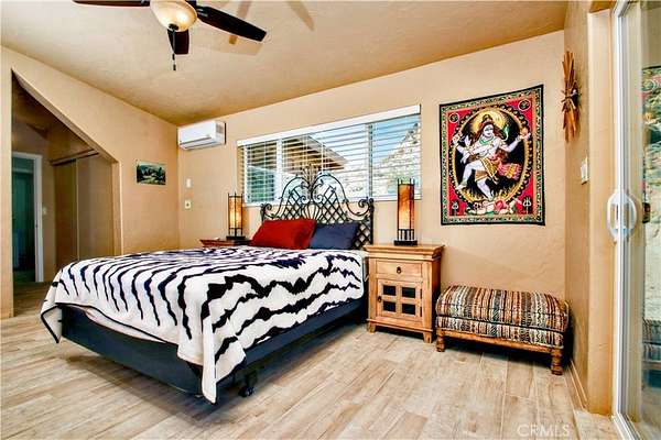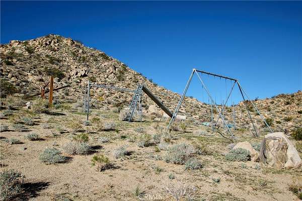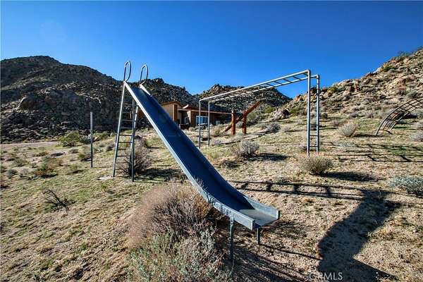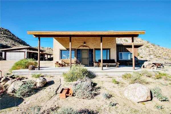 Welcome to the Joshua Tree Hideout. This truly unique property is one-of-a-kind and offers the ultimate in privacy and seclusion, and it's being sold furnished! After passing through the gate to your private road, you will round the mountain and find this 2-bedroom house with detached garage shining from the hilltop in its own private canyon surrounded by 360-degree views. The property is surrounded entirely by Bureau of Land Management (BLM) land, meaning it won't be built on, so the 5-acre parcel feels like you are living on 100+ acres. There is a private mountain on the property with a hiking trail to a bench at the top with a lookout point to take it all in. The property recently had 2 bedrooms added to it, as well as a detached 2-car garage with an additional carport. There are mini splits in both bedrooms and the living room for AC and heat. The garage has plumbing and electrical going to it, making it easily converted to an additional living space, or you can add a bathroom to your man cave. There is an insulated attic that could be used in so many ways, including an artist studio or additional sleeping space when you have larger family gatherings. And bring the kids to enjoy this built-in playground! If you are into off-road activities, this is located just minutes from the Johnson Valley OHV recreation area, home of King of the Hammers, or if you are feeling more adventurous you can take your dirt bikes and quads all the way to Big Bear from here. With a nearby airport less than a mile away, you can easily come enjoy the beauty and serenity the desert is so loved for. And best of all you are only 30 minutes from the towns of Yucca Valley, Pioneertown, Joshua Tree Village and the famous Joshua Tree Saloon. Contact the listing agent today to schedule a tour!