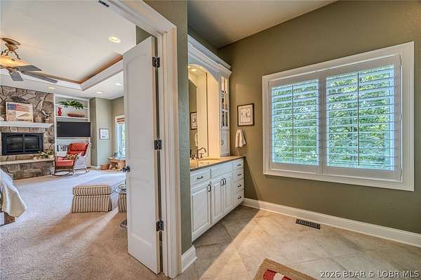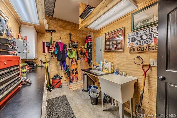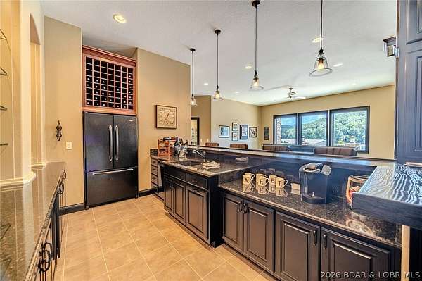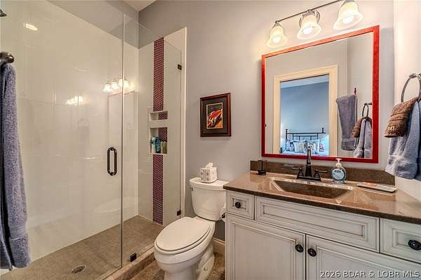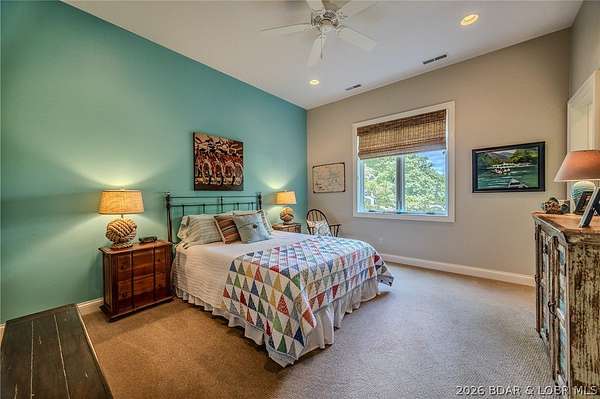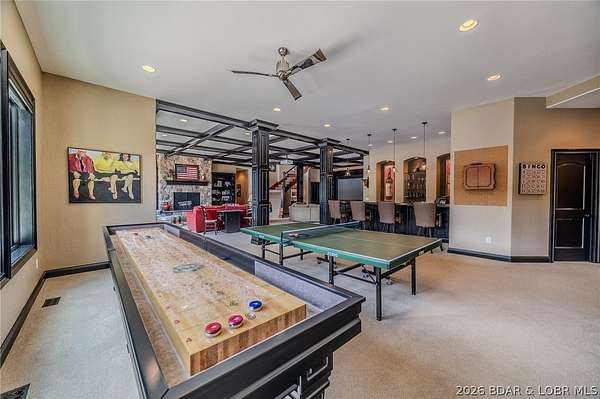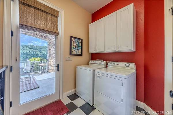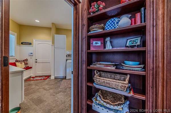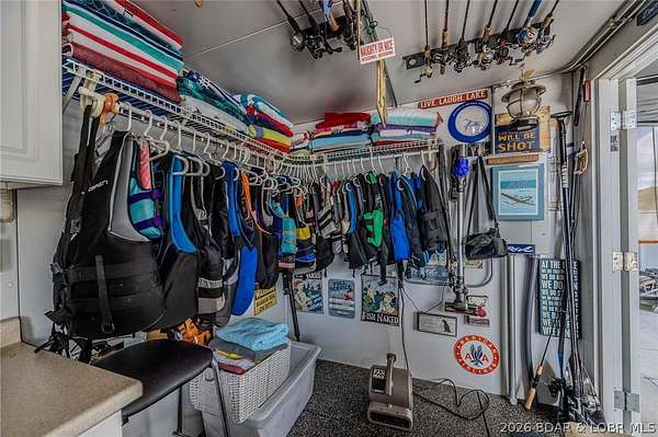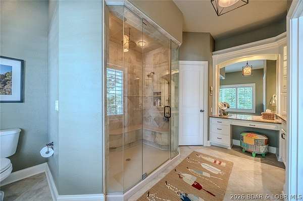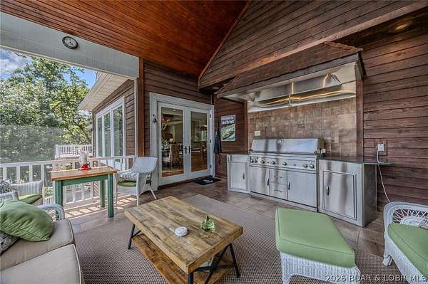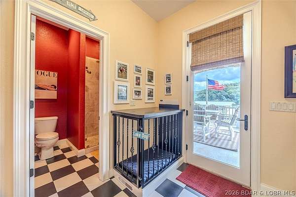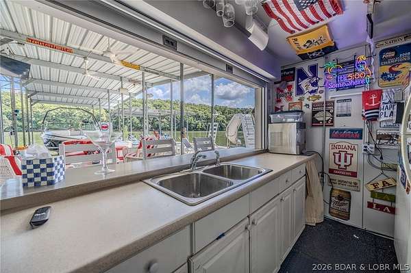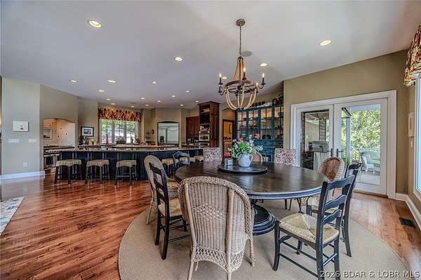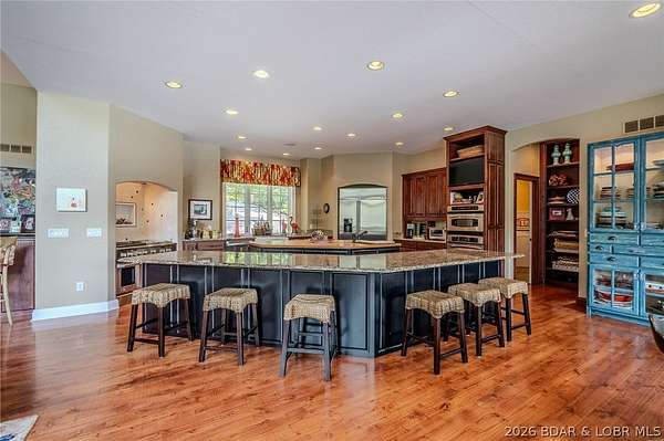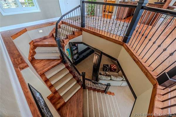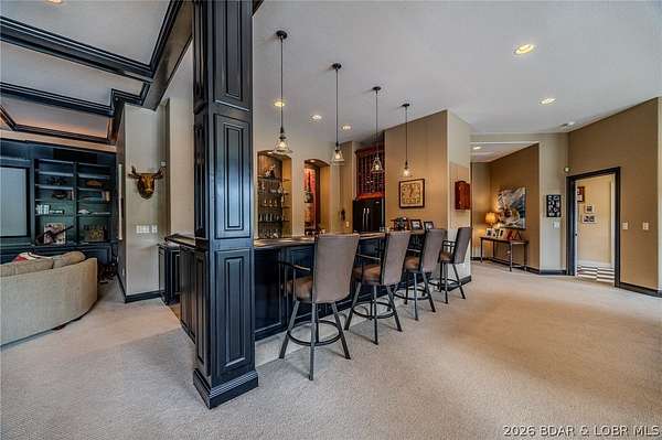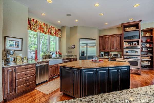 Positioned within an exclusive gated estate situated on 10.7 fully fenced acres in Osage Beach, this exceptional lakefront residence offers rare privacy and sweeping views of untouched state park shoreline. Encompassing 7,500 sq ft with 850' of shoreline, it delivers a refined lake lifestyle with an impressive private dock. A grand entry showcases soaring vaulted beam ceilings and walls of glass capturing breathtaking water views. The chef's kitchen flows seamlessly into expansive living areas and a screened porch with commercial-grade exhaust for year-round entertaining. Featuring 6 bedrooms, a private office/den, 6 full baths, and 2 half baths, the home is anchored by a luxurious primary suite with steam shower and oversized boutique-style closet with island. The walkout lower level offers a theater, bar, and game area, with additional bar service on the main level and dock. The dock includes a 16x48 slip with 30,000 lb lift, 12x30 slip with lift, and double PWC slip with lift. Additional amenities include attached and detached 3-car garages, climate-controlled gym, and RV pad with electric. Pre-listing inspected with a one-year home warranty included.