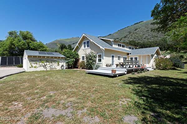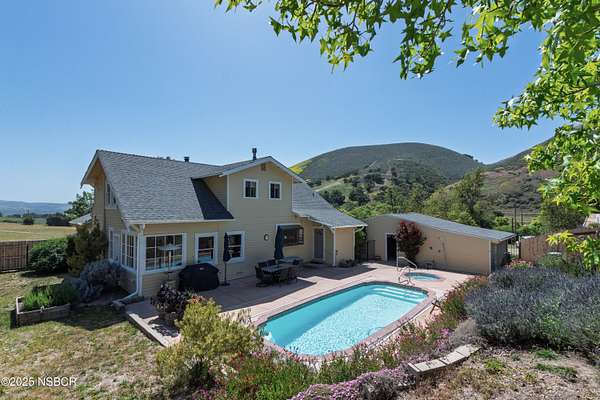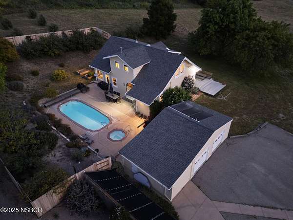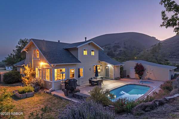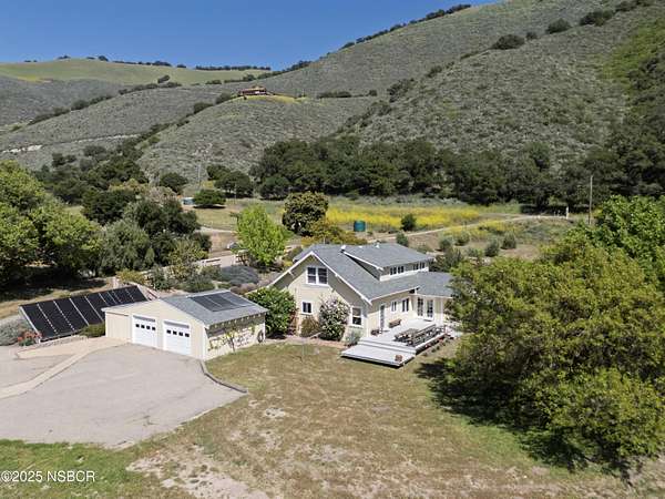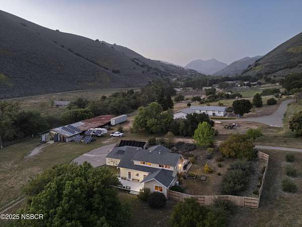 Welcome to this storybook 3-bed, 2.5-bath farmhouse on approx. 2,800 sq ft, nestled on a peaceful ranch in the Santa Maria Valley. Built in 1914 and relocated 42 years ago, this home blends vintage charm with thoughtful updates throughout.Enjoy hardwood floors, a sun-filled layout, and a cozy front mudroom/sunroom perfect for morning coffee. The updated kitchen flows into a den with fireplace, formal dining, and a spacious family room with an adjacent private office. Upstairs, the primary suite features vaulted ceilings, ample storage, and a private bath, while two guest rooms share a full bath.Step outside to a large deck overlooking the property, ideal for outdoor dining or relaxing. A solar-powered pool and hot tub, large barn with workshop/studio, and drought-tolerant landscaping make this home truly special. Additional features include raised garden beds, fruit trees, and a year-round creek.Flat, usable acreage is perfect for horses, farming, or adding an ADU. Located just off the Foxen Canyon Wine Trail near world-class wineries. Recent updates: roof, paint, fumigation, and kitchen refresh.