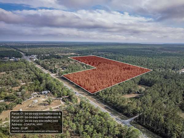 Discover almost 38 acres of mature timberland located just off Highway 98 in Crawfordville. With approximately 700 ft of highway frontage, this expansive property offers a blend of natural beauty, privacy, and convenient access, making it ideal for recreation, investment, or future development. The land features a mix of marketable timber, abundant wildlife, and multiple potential homesites. With close proximity to coastal attractions, Tallahassee, and local amenities, this is a rare opportunity to own a large tract in a rapidly growing area of Wakulla County. Whether you're seeking a private retreat, hunting land, or a long-term timber investment, this property delivers exceptional potential. Address listed is for the 1 acre parcel. Sale will consist of 3 parcels: 00-00-5-000 : 17.98 acres 00-00-0-000 : 19 acres 00-00-0-001 : 1 acre