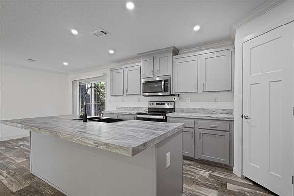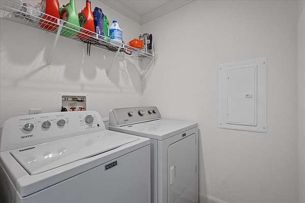 - Electric Range, Family Room, Laminate Counter, Laundry/Utility Room, Living Room, Open Floor Plan, Pantry, Smoke Detector, Split Floor Plan