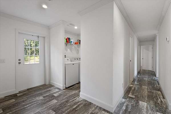 2024 - 5 BED/3 BATH SCOTBILT HOME ON 10 ACRES! This like new, oversized home boasts several upgraded features such as 2x6 walls, tape and textured drywall, metal roof, large kitchen island with pantry, and vinyl flooring throughout. With 2,128SF of heated and cooled space, there is plenty of room for the entire family and entertaining! A large living room, as well as a family room allow for everyone to have a space to relax! Glass sliding doors in the dining area let in wonderful, natural light! The Master Bathroom features a large, walk-in shower and separate soaking tub! This property, located north of Bell home is a square lot with beautiful native hardwoods that has a perimeter fence and yard fence. Amid the oaks, there is a unique water feature. Could even be a spring! Check it out! A lean-to shed is also on the property for your storage needs. Located in Gilchrist County with low property taxes and "A" rated schools. Close to the Suwannee and Santa Fe rivers, several natural freshwater springs, and Rock Bluff General Store.