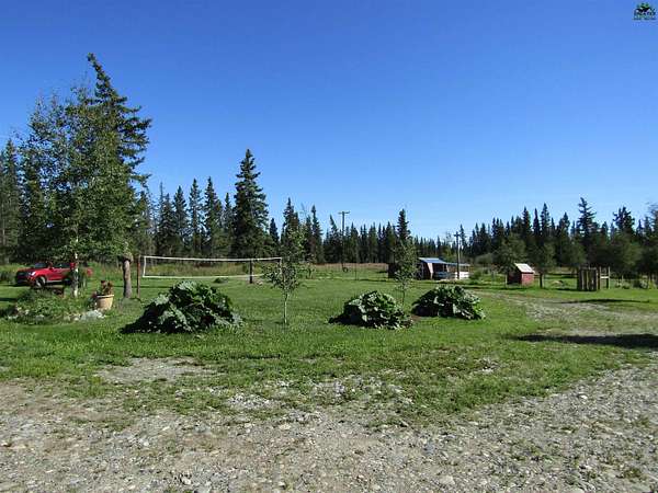 From Delta Junction go north on the Richardson Highway and turn left at mile 273.5 and follow the road back about 0.2 mile and about 0.3 mile when the road curves left. Property will be on the right.