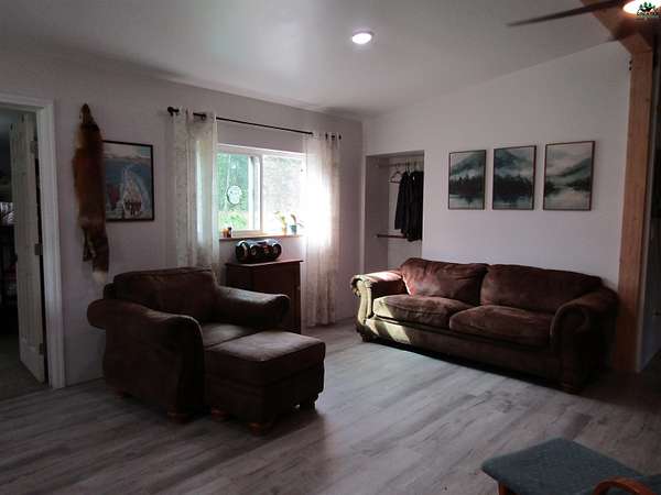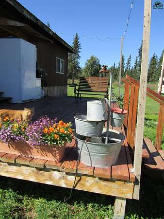 This property offers everything you need for your hobby farm on almost 7 acres in a quiet private area only about a half mile from the highway. At less than 10 years old it boasts a vaulted ceiling with recessed lighting in the large open living area with gorgeous luxury plank flooring. New Toyo stove being installed for back up heat. The efficient wood stove keeps the home toasty warm on those cold winter nights. If you are looking for a place to live the Alaskan dream with garden, greenhouse, chickens and even horses, this might be just what you are looking for. Commercial power, private well and septic. Large deck to sit and enjoy the view of your beautiful home and country surroundings. This is a great place to live if you like having elbow room and not being able to see the neighbors.