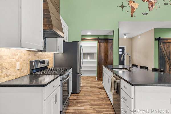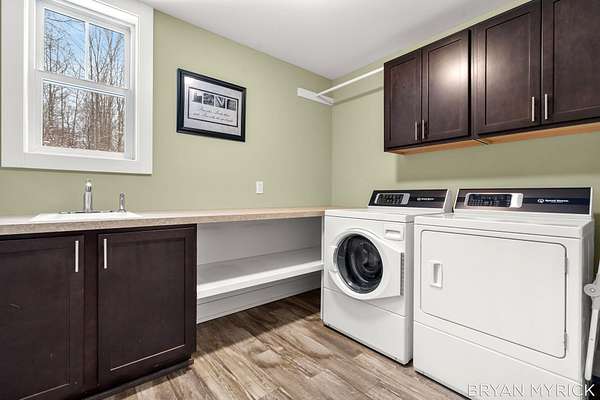 Tucked away on 3.26 wooded acres in Laketown Township just minutes from Lake Michigan, downtown Holland and Saugatuck, you will find this exceptional property offers the rare combination of luxurious main home living, versatile guest accommodations featuring a 760 square foot guest house/In-Law suite, and an impressive multi-purpose barn--perfect for any use, hobbies, events, storage or workshop. Inside the main home, you will find soaring ceilings, custom finishes, and warm natural light creating an inviting atmosphere. The open kitchen features sleek granite countertops, rich wood accents, stainless steel appliances, and seamless flow into spacious dining and entertaining areas including the 4 season room with gas fireplace and stone chimney. Featuring almost all main floor living with 4 Bedrooms, 2.5 bathrooms, separate office, all radiant floors, spiral staircase to a custom theater room and a great laundry room, this home has everything you have been looking for inside.