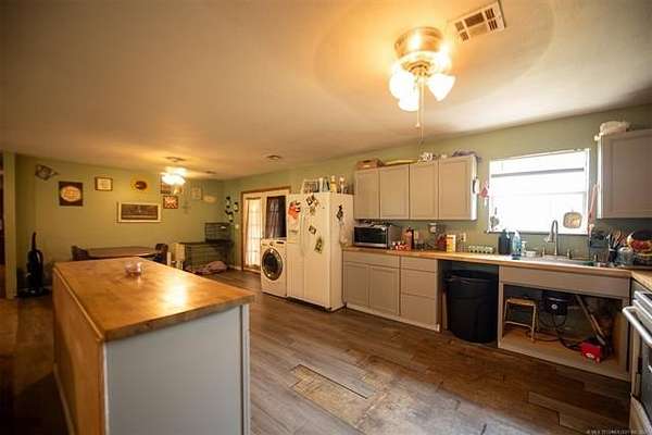 Enjoy peace and privacy in this charming 3 bedroom, 2 bath home on 2 acres in Bunch, Oklahoma. Tucked away at the end of a dead-end road and surrounded by cattle land, the property offers a picturesque backdrop of rolling hills and open skies. Inside, you'll find an inviting open-concept living space with a large bay window that fills the home with natural light. The kitchen has been updated with new cabinets, while both bathrooms have been tastefully renovated. A like-new HVAC system ensures comfort year-round. With plenty of room to spread out and the quiet of country living, this home is the perfect blend of modern updates and rural charm.