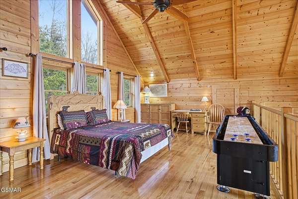 I Do Love Views earns its name the moment you arrive. Perched on five private acres at the end of a quiet community road, this executive three-bedroom, three-bath cabin commands one of the most breathtaking panoramas in the Smokies -- sweeping, multi-layered mountain views that stretch from North Carolina all the way to the Mountains in Tennessee. The full expanse of Great Smoky Mountains National Park unfolds across all three levels of the home, so no matter where you wander, the mountains are always with you. Inside, three spacious king suites each offer complete privacy with their own ensuite bath -- an ideal layout for couples retreating together, a growing family, or two families sharing a mountain escape. The large loft also has a bed for extra sleeping quarters. When the view calls you outside, soak in the hot tub as the ridgelines fade to dusk, or linger over a deck picnic with nothing but fresh mountain air and open sky. When it's time to come in, settle into the theater room for a movie night, challenge your crew to billiards, shuffleboard, or chess, and let the evening find its own unhurried pace. Secluded, spacious, and stunningly situated -- I Do Love Views is more than a cabin. It's a front-row seat to some of the most spectacular scenery in the southern Appalachians.