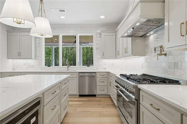 - Dishwasher, Disposal, Double Oven, Gas Range, Microwave, Range Hood