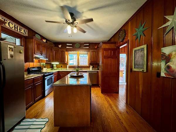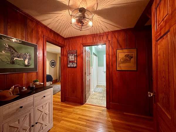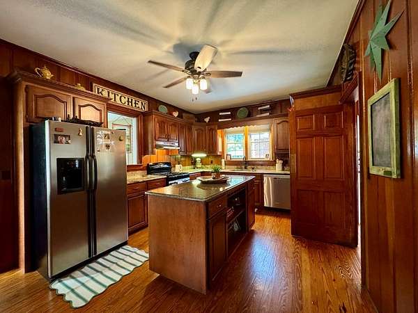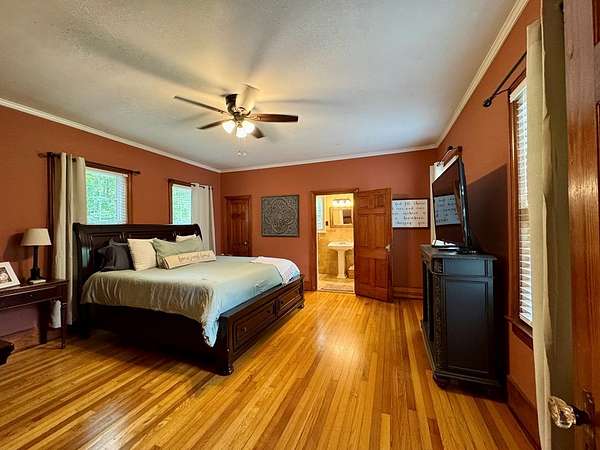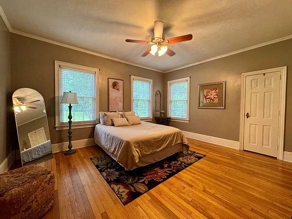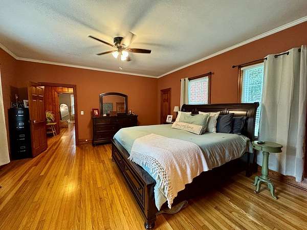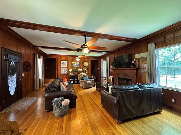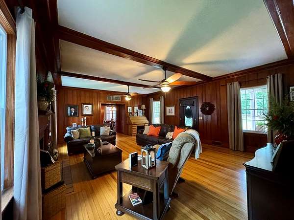 UNIQUE, SPACIOUS & BEAUTIFUL HOME on 3.87 acres, quality craftmanship and endless charm. A perfect blend of rustic elegance with 4-sided brick, authentic pine walls & floors, hardwood. Inviting front porch enters the fireside living area featuring beamed ceiling, open to dining. Kitchen w/custom cabinetry, granite, stainless, island, eat-in space. Owner's suite on main, sunroom, recreation room, mudroom entry and rear deck. Upstairs bonus room and unfinished basement. New roof, replacement windows and more, tastefully updated. Must see to fully appreciate! Top-rated Schley County Schools!