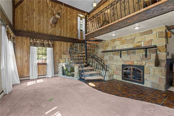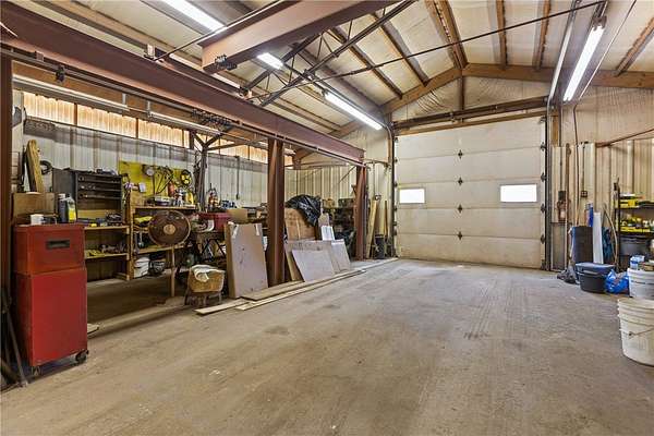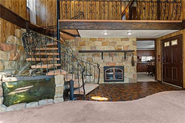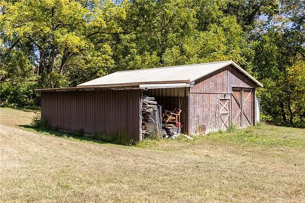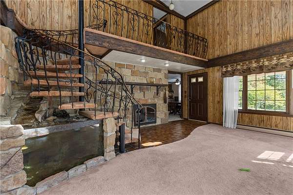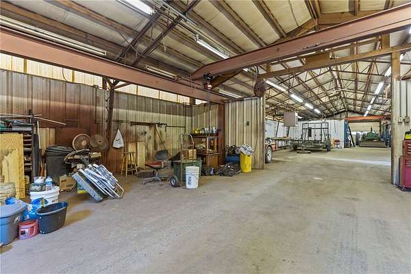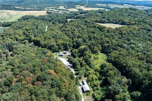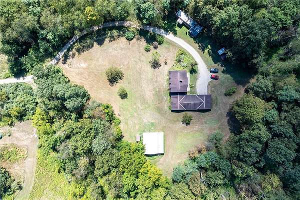 Est $4,412/moImagine...Your own wooded, 60 acre property at the end of a private drive where you can watch the wildlife, ride your quads, have horses, goats...if you can imagine it, you can do it. But wait.. there's more! Workshop with 2 natural gas furnaces. 3-phase power, and 2-TON Hoist. Also on property, a pole barn, numerous sheds, & a steel roof barn (once housed horses). Let's talk about the house! For one thing, it's in a beautiful clearing with a lot of natural light. A first floor laundry and half bath, large game room with wet bar and gas fireplace. From living room follow the handmade wrought iron railing along the spiral steps over a handmade fish tank with waterfall below. Upstairs, 3 bedrooms & full bath.