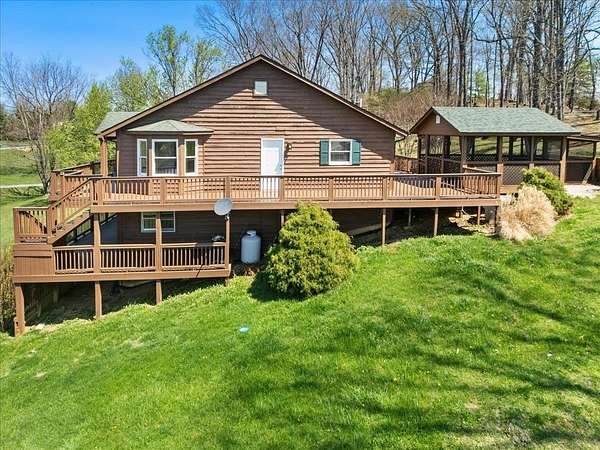 Peaceful and private, this 5-bedroom 3 Full bath home sits on over 2 acres and offers a highly functional layout with a main-level primary suite and laundry room. Modern updates include new quartz kitchen counter tops, updated bathrooms, and fresh paint throughout. The fully finished basement includes a rec room, and an extra bedroom with a ensuite bath. Step outside and enjoy the spacious yard, a new wrap around deck and screened-in porch featuring a hot tub which is fully operable and well maintained. Complete with a large 2-car garage, two storage sheds, raise garden beds, and a dog run. There is even a doggie bath for your fury friends—this property is truly a MUST SEE!