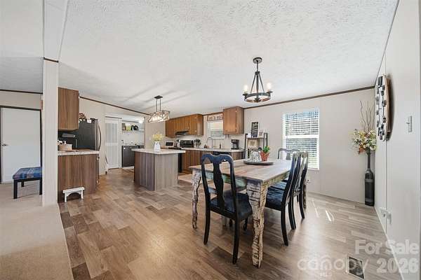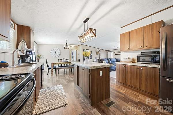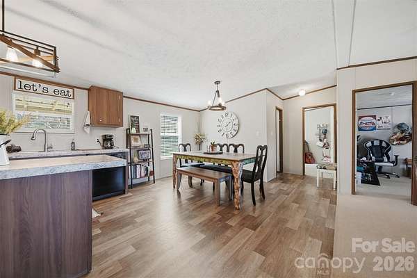 Well-maintained 2020 manufactured home situated on 2.82 acres in the desirable Wittenburg area of Alexander County, conveniently located off Rink Dam Road. This 3-bedroom, 2-bath home offers approximately 1,568 square feet of living space with a functional open floor plan designed for comfortable everyday living. The property features a fenced yard, a 2-car detached metal garage with concrete floor, and a covered back porch-perfect for enjoying the peaceful surroundings and outdoor living. The roof was replaced in 2025, with all other systems original to 2020. Enjoy a private, rural setting with pasture views across the street while still having the convenience of grocery stores, gas stations, restaurants, and an elementary school all located just a few miles away. This property offers an ideal combination of acreage, privacy, and convenience, making it a great option for buyers seeking a manufactured home on land in Taylorsville, Wittenburg, or Alexander County. Whether you're looking for space to spread out, a home with a garage and outdoor features, or a quiet country setting with easy access to town, this property delivers. There is a creek that runs the backside of the property, home is not located in Flood zone and Seller is not required to carry Flood Insurance. See Aerial from GIS with Flood overlay.