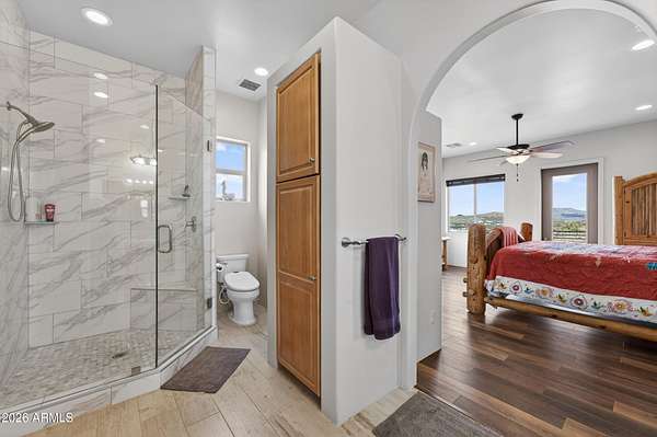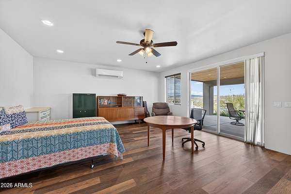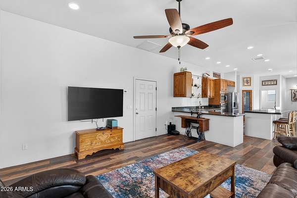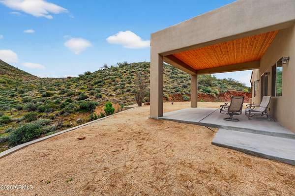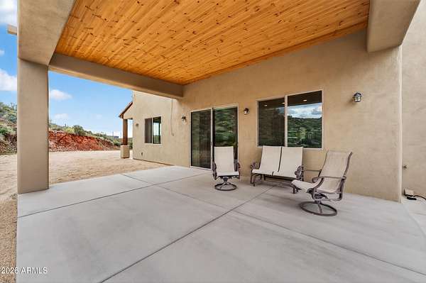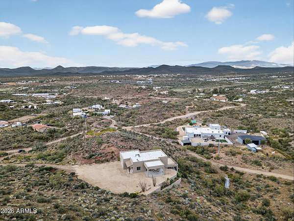 Perched on a serene private hillside, this stunning custom-built home offers panoramic views in every direction and the perfect blend of luxury, privacy, and modern comfort. Built in 2019 and thoughtfully designed to capture the beauty of its surroundings, this exceptional property sits on 3 picturesque acres with endless sky and sweeping vistas as your daily backdrop. Step inside to soaring high ceilings and an open, light-filled floor plan that seamlessly connects indoor and outdoor living. Expansive windows frame breathtaking views from nearly every room, creating a peaceful retreat that feels both grand and inviting. Enjoy outdoor living at its finest with three oversized patios, each offering a unique vantage point to take in sunrise mornings, golden sunsets, and sparkling evening skies. Whether you're entertaining guests or savoring a quiet cup of coffee, there's a perfect spot to relax and unwind. The home features 2 spacious bedrooms plus a dedicated office space along with 3 beautifully appointed bathrooms. Every detail reflects quality craftsmanship and thoughtful design. A two-car garage provides convenience and storage, while abundant additional parking ensures plenty of space for guests, recreational vehicles, and even an RV. If you've been searching for privacy, views, and modern custom construction all in one extraordinary property, this hillside sanctuary delivers it all.