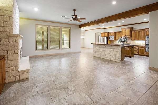 A home like this rarely comes on the market! Located on TWO wooded acres in South College Station, this custom home offers space and privacy in a small, elite neighborhood with a true country feel. Five bedrooms, four full baths, a formal dining room, private office, and a three-car garage. Recent upgrades include a new roof in 2025, complete with new gutters with leaf guards, two recently replaced Carrier HVAC systems, and new appliances in the kitchen! The upstairs fifth bedroom with full bath, wet bar, and multiple closets provides remarkable flexibility. It's ideal as a media room, game room, or private guest retreat. The open-concept kitchen is the heart of the home with new premium appliances, including a Jenn-Air gas cooktop, Whirlpool double ovens, GE French-door refrigerator, KitchenAid dishwasher, and an expansive eating bar overlooking the living and breakfast areas. The primary suite is a private sanctuary with direct patio access and a spacious bath. One secondary bath includes ADA handrails and a built-in shower bench.