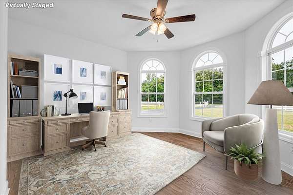 Downstairs offers New Solid Oak Flooring in all Downstairs Living Areas which includes a Dedicated Home Office with natural light, a Formal Dining Room, and a Lovely Living Room providing plenty of room for indoor entertaining. An Outstanding Kitchen is filled with granite and wood cabinetry for plenty of storage and prep space.