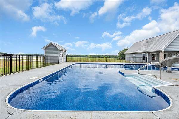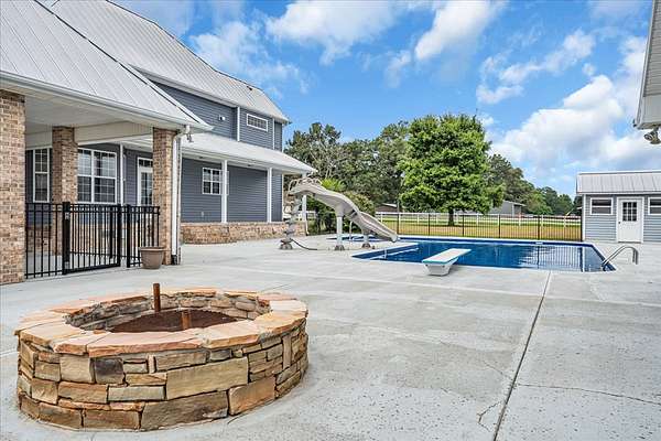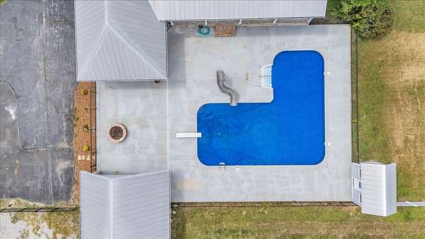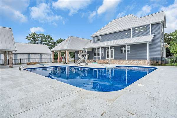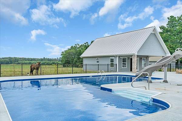 Step outside to enjoy your own private retreat: a large L-shaped swimming pool with slide, 2 yr old lining and diving board perfect for relaxing on sunny days. The Poolhouse is equipped with full size Kitchen and full Bath. This could also be a Guesthouse ideal for visitors or In-Law Quarters.