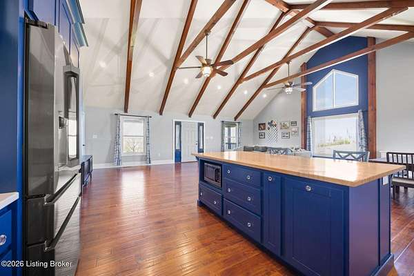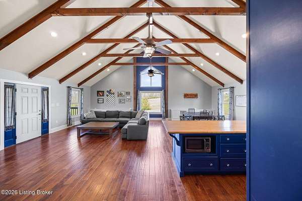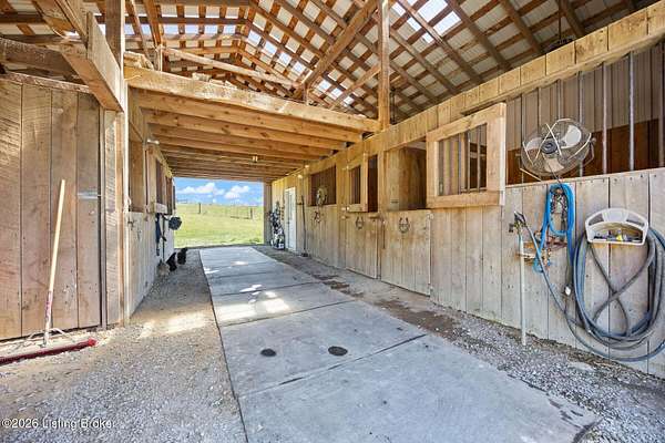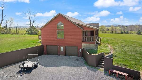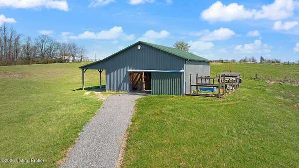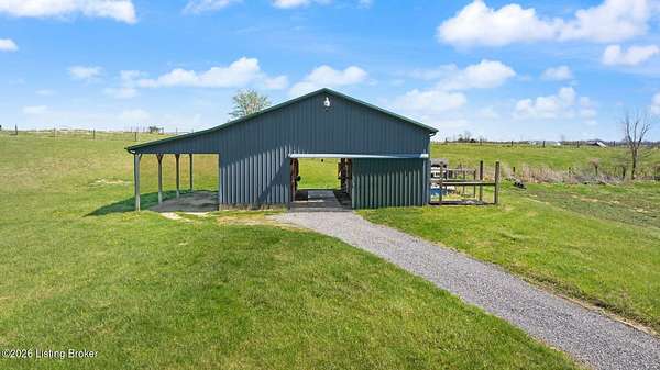 Welcome to your own slice of Kentucky countryside-nearly 20 acres of open land, fresh air, and room to truly live. This property is already set up and ready for you, with 5 acre of fenced pasture with water access, a 4 stall barn with tack room that has electricity, a horse arena with all weather footing allowing you to ride, train and enjoy your horses from day one. There is also a second area that is fenced in and ready for smaller livestock or could be converted to add additional horses. Out front, a fully stocked pond that stretches over an acre, giving you the kind of peaceful water views and sunsets that never get old. The ranch styled home offers over 2200sq. ft. of living space. It has three oversized bedrooms, and two full baths, plus a partially finished bonus room upstairs that is 574sqft and can be used as an office, playroom, guest space or hobby room. The full walkout basement is ready for your vision whether that's more living space, a workshop, or just incredible storage. The basement also has a room that could be used for a safe room or wine cellar. In additional to all of this, you will find a chicken coup by the barn and three egg laying chickens, because this property isn't just about living-it's about lifestyle. Morning coffee on the porch. Evenings fishing in the pond or mornings riding out in the pastures greeting the rising sun, this is the kind of place you don't just buy... you feel. The sellers have made these property Improvements since their purchase: Installed main water line to the pasture with two years left on the warranty thru Apex- $7200. Installed livestock waterer- $3700,10x20x10 livestock run in shed-$8000- 5 acre field fenced 2x4 wire no climb with top board-$28000, All weather dressage arena (excavation, drainage, sand-$20,000. Gravel installed on the road leading to the house within the last 6 weeks- $5000.