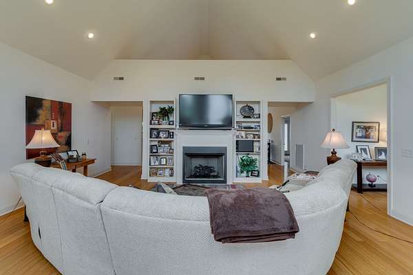 Great room and lower-level bonus room/bedroom both feature gas-log fireplaces. Finished basement provides separate living quarters with its own kitchen, bedroom/bonus room, bath, and garage.