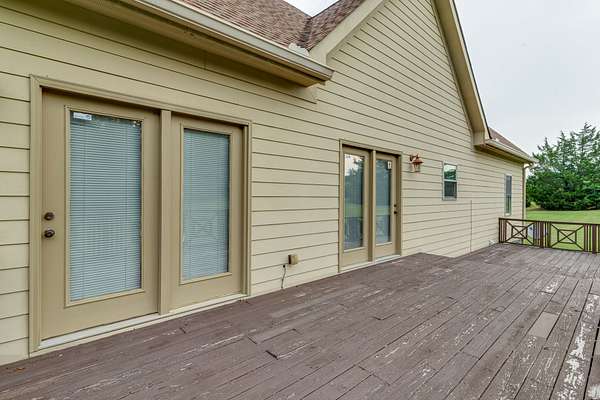 Large deck overlooks tranquil acreage with abundant wildlife. Property includes wooded areas, a creek at the back, and open space suitable for shooting or recreational use. A perfect country setting with room to roam.