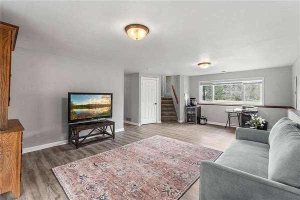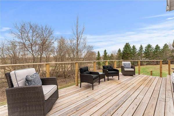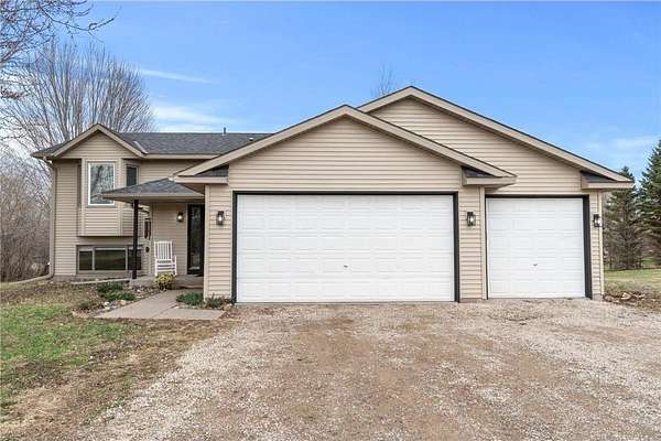 6+ acres, 4 miles from the boat landing on Rush Lake, walking path through your wooded back acreage, and the peaceful mornings, and still an easy commute with access to the conveniences...just take a deep breath and imagine it because that will be your life when you call this gorgeous house your home! Move-in ready, spacious kitchen, walk-out lower level, private bath off master bedroom and a huge outbuilding is waiting just for you! Definitely a must see!!