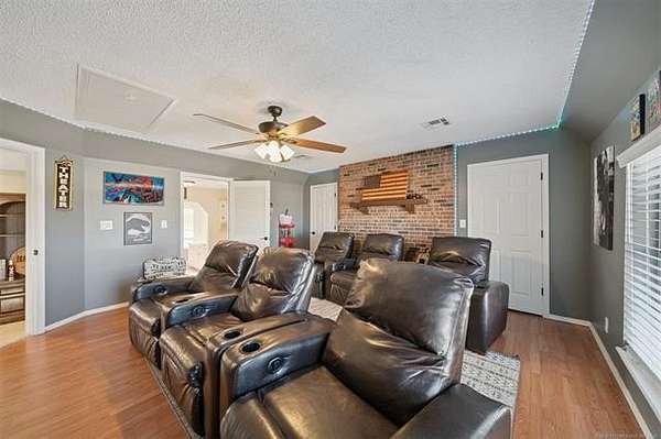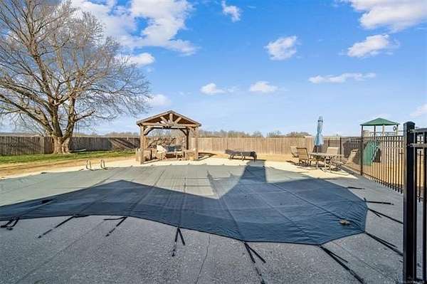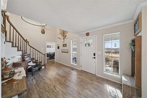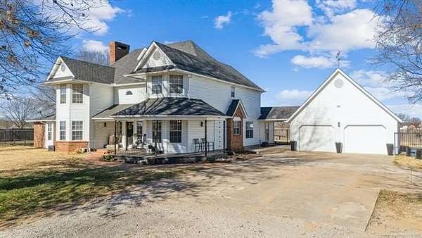Set on 20 scenic acres in Sperry, this exceptional 3,700 sq ft estate offers the perfect blend of space, comfort, and versatility. The home features 4 bedrooms and 4 bathrooms, including two master suites & master baths. One of the secondary primary bedrooms has been thoughtfully converted into a dedicated theater room, creating an ideal space for entertaining or relaxing at home with lower and upper level fireplaces to enjoy on those colder winter days. Conveniently located within 4 miles of Cross Timbers Marina at Skiatook Lake, just 10 minutes to Skiatook, and an easy commute to Owasso or Tulsa, this property combines country living with modern convenience and luxury. Inside, the home offers a private office, formal dining room, breakfast nook, and multiple living spaces designed for both everyday living and hosting guests. Recent updates include a new roof, fresh interior and exterior paint, new luxury vinyl plank flooring, and a new pool pump-making the home truly move-in ready. Outdoors, the property continues to impress with a wrap-around porch, 2-car garage, 40x40 insulated shop, 2-stall horse barn with tack room, hay barn, stocked pond, and an in-ground pool complete with pergola and enclosed upper and lower patios-perfect for enjoying Oklahoma summers. The land is cross-fenced for pasture rotation and features a ranch-style welded pipe gated entry. Whether you're looking for a peaceful country retreat, space for livestock, or an entertainer's dream property, this remarkable Sperry estate offers it all.