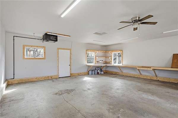 The property includes a spacious oversized 826 square foot heated garage offering ample room for hobbies or workshop space, an ideal complement to the generous acreage, powered, insulation and heated with custom workbenches. Chicken coop ready, there is one there to refurnished.