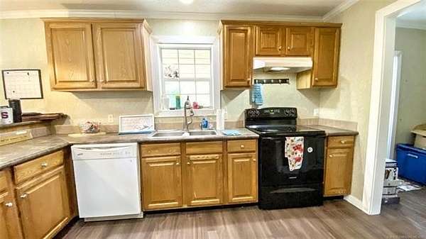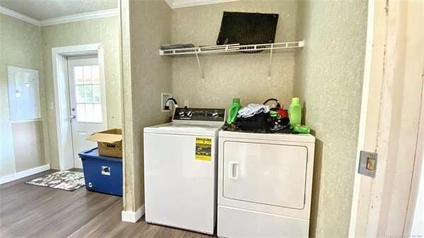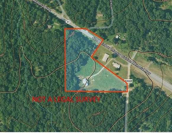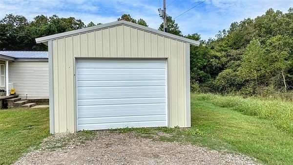 From Stilwell go west on Hwy 51 for 6.4 miles. Property on left side of road. You will drive between the house and shop to the property.