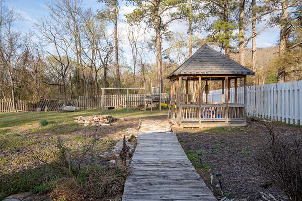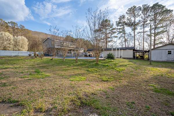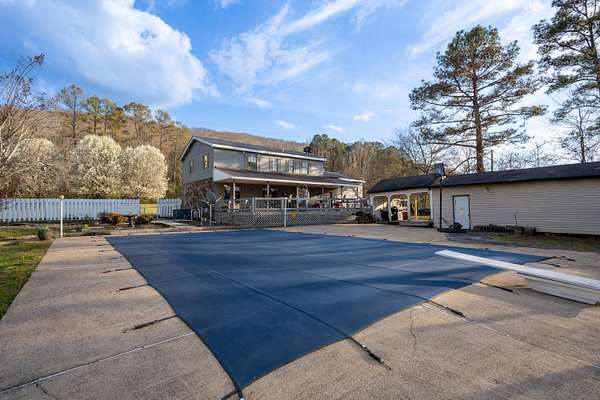 Escape to the country with this charming 3-bedroom, 2.5-bath home situated on approximately 2 level acres in Stevenson, AL. Built in 1978, this property offers the perfect blend of peaceful country living while being just minutes from the Tennessee River and a nearby boat ramp, making it ideal for fishing and boating enthusiasts. The home features a spacious layout including a game room (converted garage), a remodeled laundry room, and a primary suite with a walk-in closet and an updated walk-in shower. The guest bathroom has also been refreshed with a new tub and tile. Enjoy outdoor living with both a covered front porch and a covered back porch with durable Trex decking--perfect for relaxing or entertaining. Additional highlights include a metal roof, concrete driveway, fiber optic internet, partially fenced yard, gazebo, fire pit, and multiple outbuildings. The detached shops are on a separate electric meter, offering great flexibility for hobbies, storage, or workspace. Major updates include a 2-year-old hot water heater and a pool motor replaced approximately two years ago. If you're looking for a well-maintained home with room to spread out and easy access to outdoor recreation, this property is a must-see.