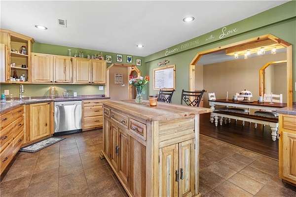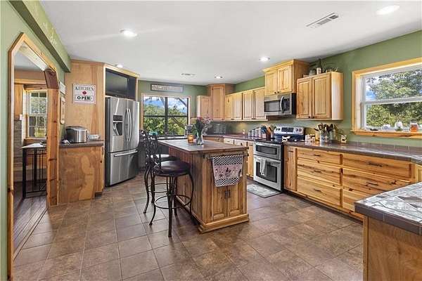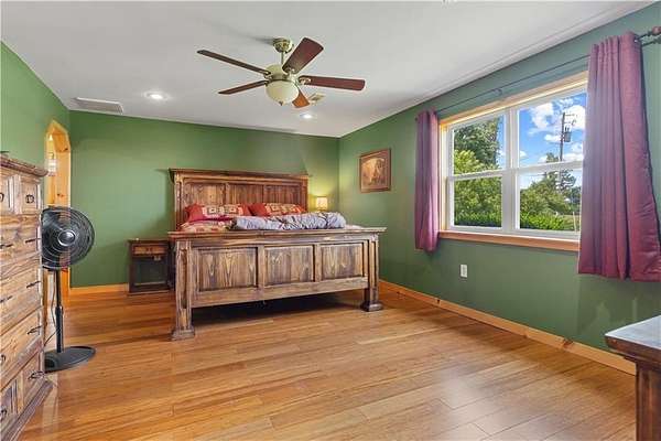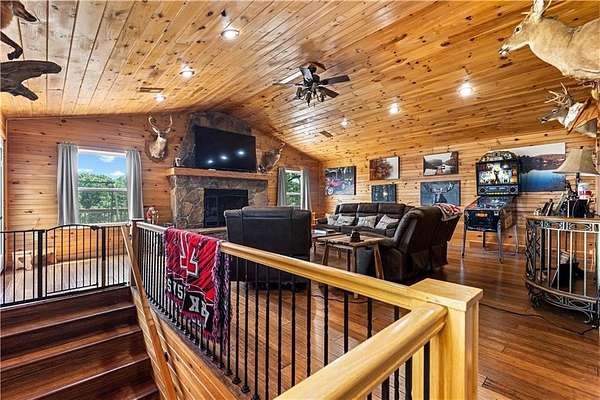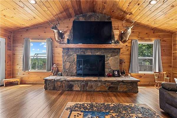 Welcome to your private slice of Arkansas paradise! This expansive 3,900 sq ft 4-bedroom, 2-bath home sits on 22.04 beautiful acres and comes complete with a large 1,500 sq ft. metal shop (with power and water available), and a concrete-floored outbuilding. Inside, you'll find bamboo flooring throughout, with tile in the kitchen and bathrooms. Enjoy peace of mind with updated gas lines (Jan 2025) for the backup propane heaters. Step outside to a wraparound deck offers the perfect spot to unwind and enjoy your morning coffee. Towards the back of the property, you'll find a small pond and a cedar hunting stand that conveys. There is also a variety of fruit trees--peach, pear, apple, fig, plum--as well as grapevines. Every mounted animal in the living room was harvested right on the property. This property is a dream for outdoor lovers and hunters alike--offering space, scenery, and true Arkansas charm.