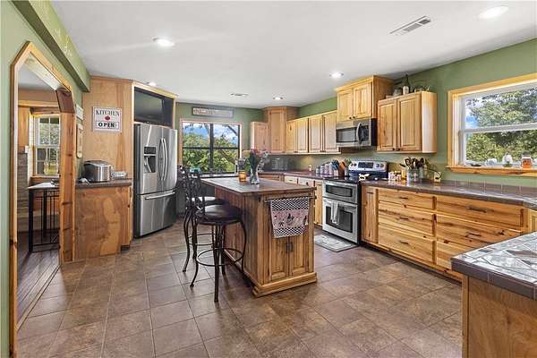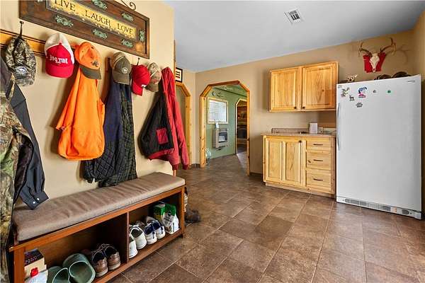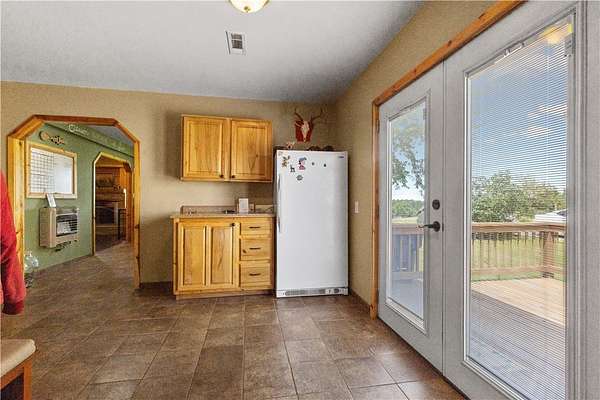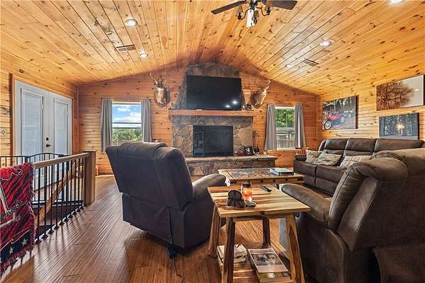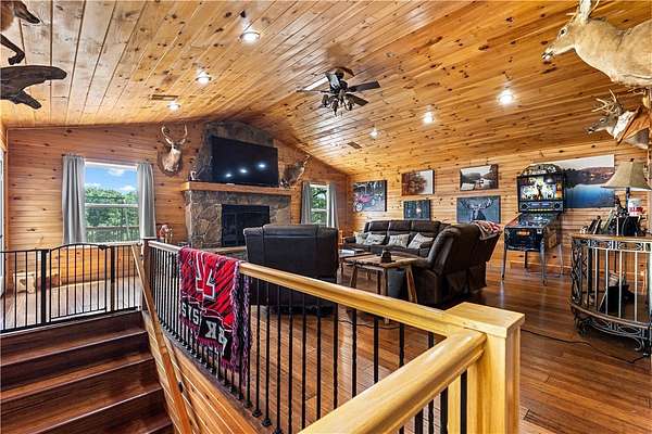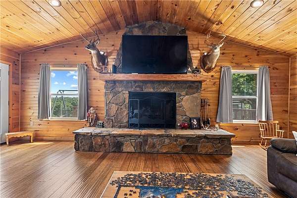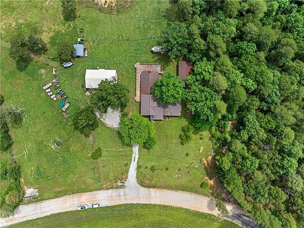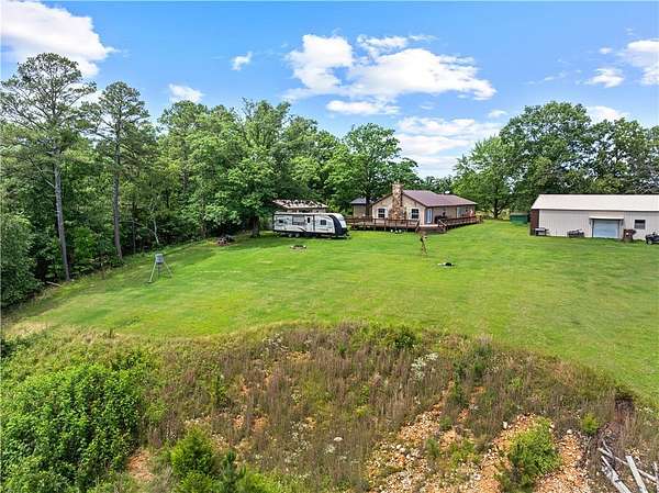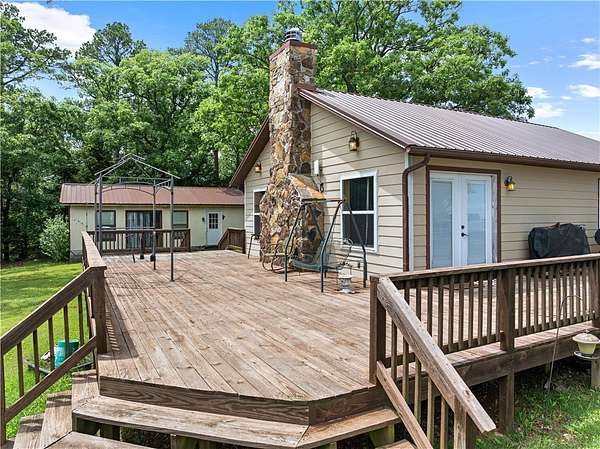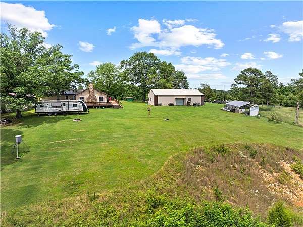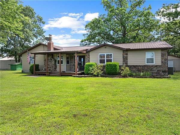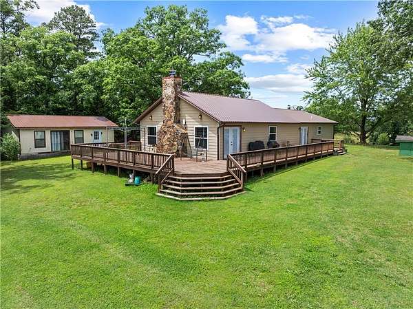 Welcome to your private slice of Arkansas paradise! This expansive 3,900 sq ft 4-bedroom, 2-bath home sits on 22.04 beautiful acres and comes complete with a large 1,500 sq ft. metal shop (with power and water available), and a concrete-floored outbuilding. Inside, you'll find bamboo flooring throughout, with tile in the kitchen and bathrooms. Enjoy peace of mind with updated gas lines (Jan 2025) for the backup propane heaters. Step outside to a wraparound deck offers the perfect spot to unwind and enjoy your morning coffee. Towards the back of the property, you'll find a small pond and a cedar hunting stand that conveys. There is also a variety of fruit trees-peach, pear, apple, fig, plum-as well as grapevines. Every mounted animal in the living room was harvested right on the property. This property is a dream for outdoor lovers and hunters alike-offering space, scenery, and true Arkansas charm.