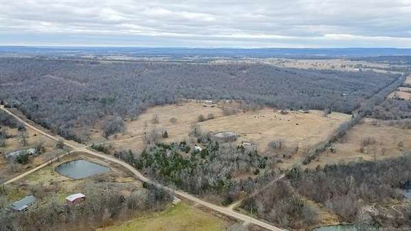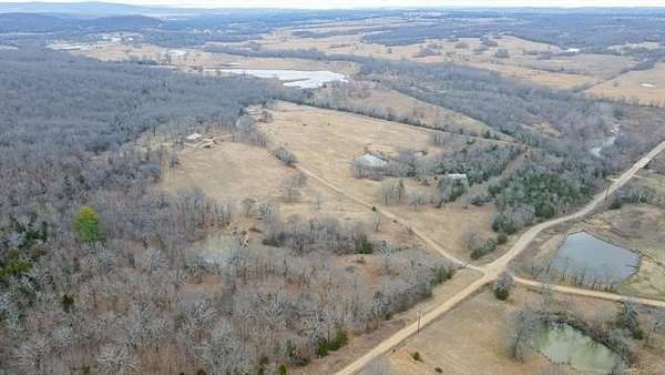 Located in the welcoming community of Muldrow, Oklahoma, this exceptional 90-acre (+/-) property offers an ideal setup for cattle, horses, or other livestock, along with the privacy and beauty of rural living. Muldrow is known for its small-town charm, strong community ties, and convenient access to schools, shopping, and major highways. The land features a balanced mix of pasture and natural cover, with three ponds providing dependable water sources for livestock and attracting abundant wildlife. Three mature native pecan trees add shade and character to the property. The 4-bedroom, 2-bath home is thoughtfully built into the side of a hill, offering efficiency, durability, and an elevated setting. The home includes two living areas and a deck perfect for enjoying the scenic views overlooking the acreage. Additional features include rural water, an energy-efficient geothermal HVAC system, a 200-amp electrical breaker, and a 500-gallon propane tank. Improvements include a 30' x 50' barn with a 10-foot ceiling and a shop, both equipped with 220-volt plugs, making them ideal for equipment, welding, or agricultural operations. This property offers productive land, quality improvements, and peaceful country living--perfect for ranching, homesteading, recreation, or simply enjoying the Oklahoma countryside.