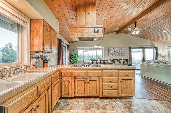 Beautiful 3 bedroom 2 bath home with detached private adu,perched on a hill with spectacular views. Rare opportunity to own two homes on one apn. Use the adu for the in-laws or rent it out for extra income. Main House is 1567 square feet with a wrap-around deck that opens the house to extra room for entertaining and enjoying the mountain views. Large open floor plan with vaulted warm. wood beam ceilings and matching LVP flooring compliment the mountain charm of this exquisite estate. The adu is 750 square feet and has a cozy cottage feel to it. Perfect for 2 people to live in. Short drive to Bass Lake and Yosemite Nat'l park while still being close to town and schools. This is a must see mountain charmer . Call for your private viewing today.