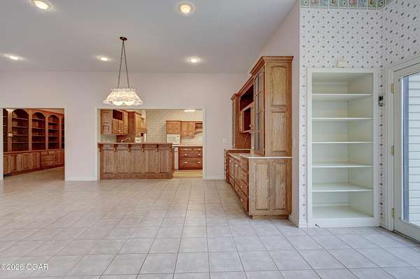 What a home! Over 6200 sq ft of main floor and basement sq footage in the big, big house! 6 bedrooms, 5 bathrooms, with a primary suite having 2-bathroom setups plus private laundry room. Huge and spacious living room with vaulted ceilings plus expansive floor to ceiling windows to watch the backyard woods and wildlife scenery. Main floor has multiple dining areas plus kitchen bar area and huge island for prep cooking. Large walk-in pantry with 2 spots for extra refrigerators/freezers. Basement has a nice size kitchenette area and huge family room/game area. 2 fireplaces, 2 laundry rooms, 2 car attached garage with overflow area plus bonus 3 car garage and workshop area!