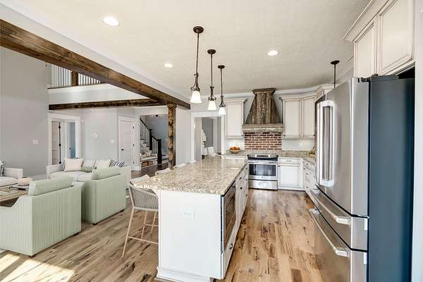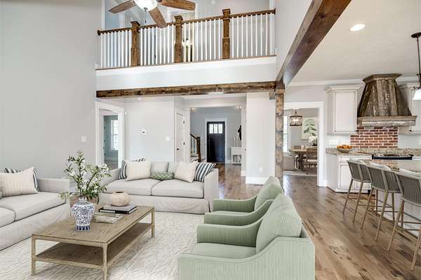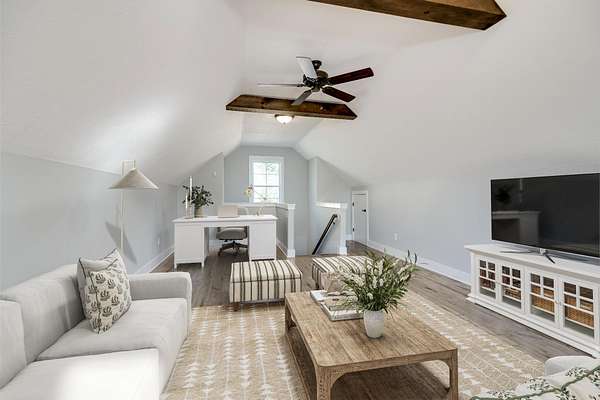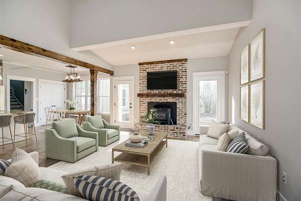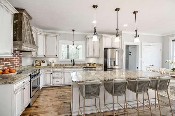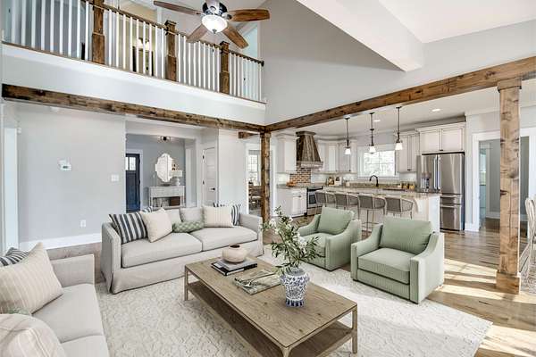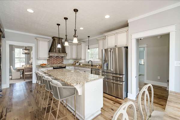 Welcome to this beautiful craftsman-style home nestled on 20 private acres, complete with a charming wraparound front porch! This spacious 4-bedroom plus bonus room, 3-bathroom home offers an inviting open-concept layout filled with natural light and timeless character! Step inside to a stunning two-story foyer, with a formal dining room to the left and an elegant craftsman staircase to the right. From the foyer or dining room, you'll enter the warm and welcoming family room and kitchen area, designed for both everyday living and entertaining! The kitchen features distressed antique white cabinetry, granite countertops, and stainless steel appliances! Beautiful exposed wood beams between the kitchen, breakfast area, and family room enhance the home's rustic country appeal! The family room centers around a cozy wood-burning fireplace with a brick surround! Two bedrooms are conveniently located on the main level, including the primary suite and a guest bedroom. The primary bedroom features a spacious walk-in closet and a luxurious en-suite bathroom with a double vanity, freestanding clawfoot tub, and a large tiled walk-in shower. The guest bedroom has a nice size walk-in closet and access to a full bathroom with a tiled tub/shower combination! Upstairs, you'll find two additional bedrooms that share a full hallway bathroom with a double sink vanity and tiled tub/shower, as well as a separate bonus room located on the opposite side of the home--perfect for a media room, playroom, or home office! The main-level laundry room offers additional cabinet storage and a deep utility sink for convenience! Step outside to the Trex back deck, where you'll find a beautiful brick wood-burning fireplace--an ideal spot for entertaining or enjoying cool evenings while taking in the scenic views of the expansive backyard! The deep 20-acre property extends well beyond the wooded area, offering privacy, space, and endless possibilities!
