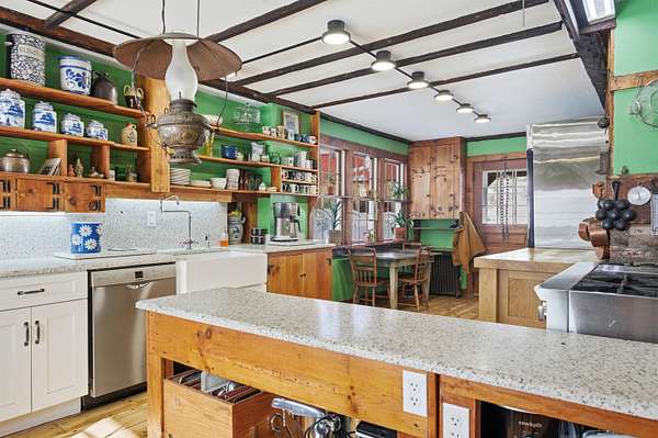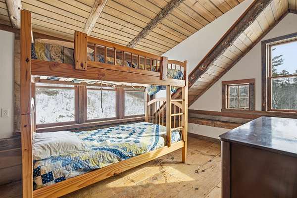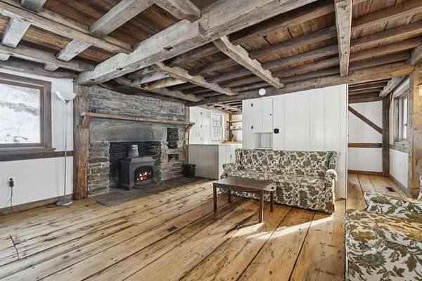 Encompassing over 200 acres of pasture and forest, Timberland Farm is anchored by an early 1800s farmhouse that feels at once timeless and lived-in, a place shaped by centuries of stories, music, and shared meals. The living spaces feel both intimate and generous, framed by hand-hewn beams and original wide pine floors. From the dining room to the music room, wood-burning fireplaces crowned with antique mantels add warmth and character, while the expansive kitchen hearth draws one in for easy conversation and board games. Built-in bookcases, plaster walls, wood paneling, and windows overlooking the land lend the house a quiet, grounded grace. The farmhouse also includes a lower-level guest apartment with a private entrance. Nearby, a charming guest cabin, once the town's blacksmith shop, provides a private haven for visitors. The barn has been thoughtfully reimagined and now houses a commercial kitchen, gym, and offices, offering flexibility for creative enterprise and agricultural ventures. A separate barn includes a woodworking shop. In recent years, pastureland surrounding the home and pond was reclaimed for grazing goats, restoring the agrarian rhythm of the property. Wildflowers and apple trees scatter the fields. A three-quarter-mile hike through the wood reveals a cool swimming hole. Additional woodland trails invite walking, snowshoeing, and foraging for berries, mushrooms and fiddleheads. Timberland Farm is a legacy holding, and very private, yet within easy reach of Stratton, Bromley, Magic Mtn. and Okemo. 17 miles from Manchester and 26 miles from Rutland Airport. 3 h from Boston and 4 h from New York. Showings are by APPOINTMENT ONLY. Do not drive up the driveway to view the property. Home is owner-occupied and surveillance is in effect. Contact listing agent to arrange all showings.