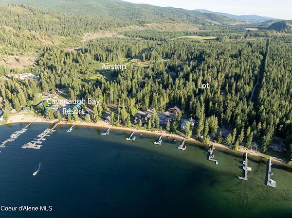 Fantastic nearly 1/2-acre lot in sought-after Cavanaugh Bay with partial lake views and full utilities in place-power, sewer, and unlimited water service with quarterly fee. LID is paid in full. The front half of the lot is graveled, offering ample space for multiple RVs with full hookups, while the back half is treed and grassy for added privacy. Located just minutes from Cavanaugh Bay Resort and a short walk to Clipper Marina, public swimming areas, and the Cavanaugh Bay Airport. Enjoy immediate access to the 400+ acre Tanglefoot Wildlife Preserve trail system for walking, biking, or riding. Surrounded by high-end homes in a quiet, protected bay, this is an ideal Priest Lake getaway with everything ready to enjoy now.