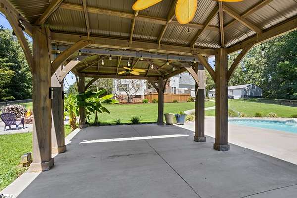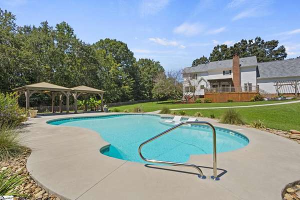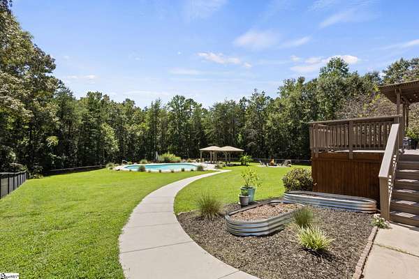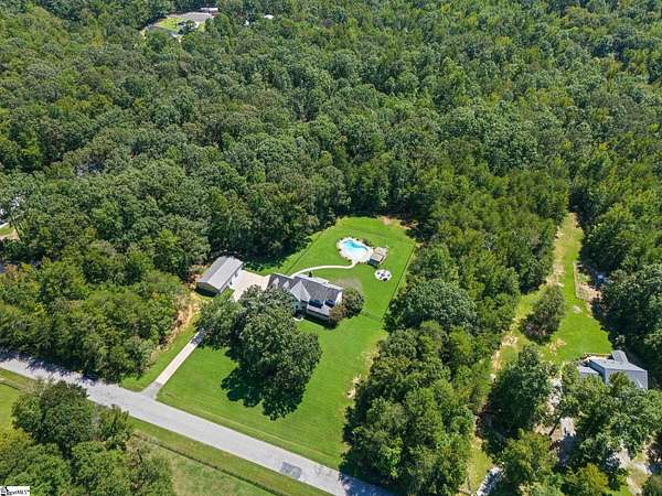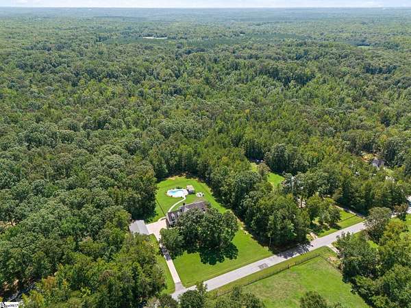 Call of text Lisa Griffith 864-616-0791. Do Not Miss this opportunity to own this Southern home nestled on an Approximately 5 ACRE lot and loaded with charming quality features. Escape the chaos and enjoy the serene privacy from the covered wrap around front porch. The traditional floor plan offers a foyer entry and a FormalLiving Room,. Dining Room is a nice size and features picture moldings and tons of natural light. Kitchen has been transformed into a modern oasis with a nice garden window, neutral paint, and beautiful white cabinets. Stainless appliances complete the space along with a pantry and breakfast area. Enjoy the open Great Room with gas logs, the perfect place to entertain and be part of all the action in the kitchen or on the deck. Office could also be used as a 4th bedroom with easy access to a full bath on the main level. Upstairs has the large master suite with an inviting SITTING AREA, full bath, and generous size walk in closet. Flex space / Bonus is located off the master with plenty of room and excess storage. Covered Balcony access near master is a great place to sit and take in all the gorgeous wildlife in the area. Two additional bedrooms, bathroom, and laundry closet complete the upstairs living space. THe attached two car garage is oversized with work bench and storage. The oversized garage will accommodate 2 large vehicles Outside is equally nice as the inside the large back deck features a covered PERGOLA and overlooks the gorgeous flat wooded, private back yard with inground Salt Water Resort style pool. With two Perogloas and fire pit area. Featured also is the 30x50x10 Building with electricity that is fully insulated with 2 bay garage doors. Great for at home mechanical business or wood working shop. Never be without power as this home is equipped with whole house Generac Generator less than 3 years old. Fairview Forest is an excellent community offering larger tract homesites for its homeowners. Horses are permitted. Just a short drive to all the conveniences of Simpsonville at Fairvew Rd, this is an excellent opportunity to MOVE RIGHT IN to your own quiet retreat.