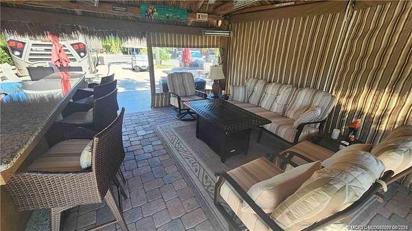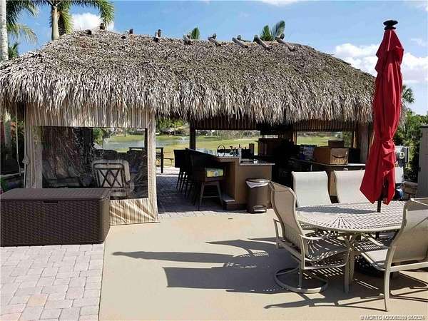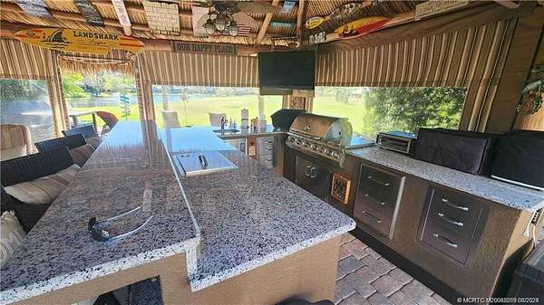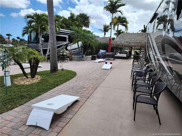 Conveniently located near the clubhouse in one of the resort's most sought-after areas, this exceptional lot offers breathtaking views of two fountains and a tranquil lake. The expansive tiki hut is designed for both entertaining and everyday enjoyment, featuring a fully equipped outdoor kitchen with abundant storage, built-in ice maker, ice chest, Bull grill, and striking granite countertops. The property is beautifully landscaped with mature palms and raised beds, while a newly stained parking pad and spacious paver areas provide plenty of room for relaxing or hosting guests. Even better, this lot is being offered fully furnished, so you can start enjoying the resort lifestyle right away. A perfect blend of convenience, luxury, and natural beauty, this lot is truly a must-see. Don't miss the opportunity to claim your own slice of paradise!