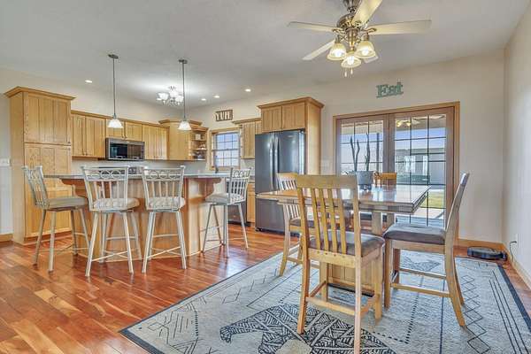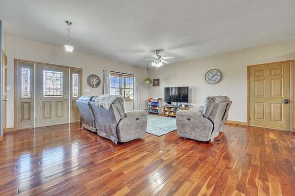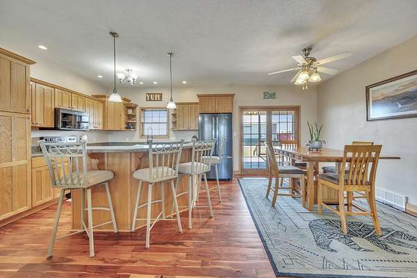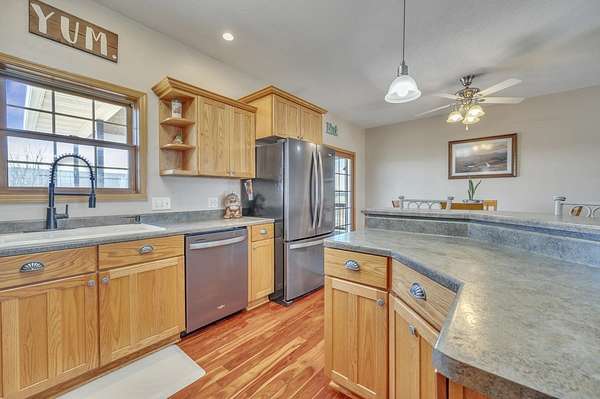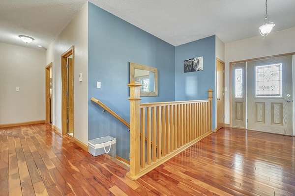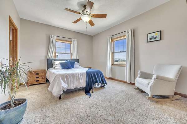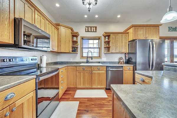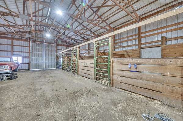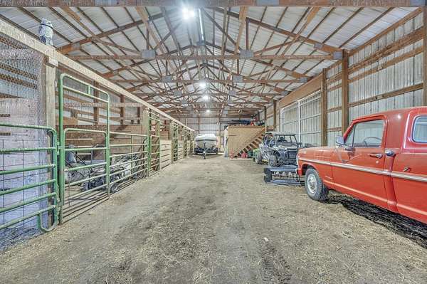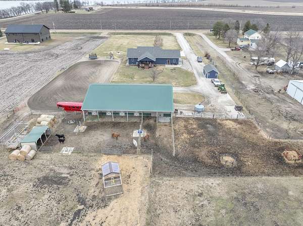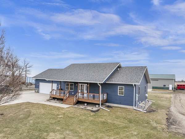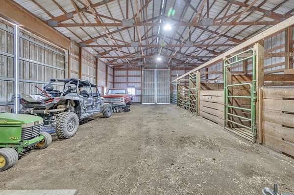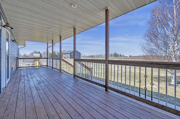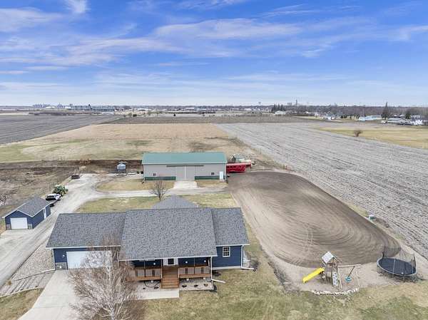Picture-perfect 9.79-acre acreage offering the ideal setup for hobby farming and peaceful country living. Built in 2007, this spacious home features 4 bedrooms, 3 bathrooms, and a versatile layout including a second kitchen in the basement with a private entrance from the garage. The property is well-equipped for horses with a 36’ x 72’ EPS building/livestock barn offering 6 stalls, heated waterers, a heated dog area with run, and a sand arena, along with 5 acres of alfalfa/grass mix set up for 3-pasture rotation. A separate 14’ x 24’ detached garage adds extra storage. Extensive updates provide peace of mind, including a new septic system (2021), new roof and LP SmartSide siding with 30-year warranty (2025), new gutters, major furnace repairs, AC overhaul, and more. Interior improvements include new kitchen appliances and a finished basement gym space. Outside improvements include new garage doors, driveway widened and extended, and beautifully refreshed decks. Enjoy low-maintenance living with an included robotic mower that automatically maintains the lawn. Five Island Lake is just down the road and hoist availability through the city. This is a rare opportunity to own a well-updated acreage with space, functionality, and flexibility.