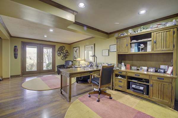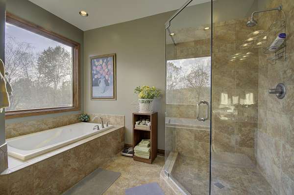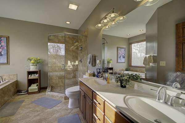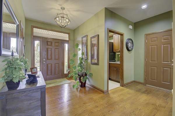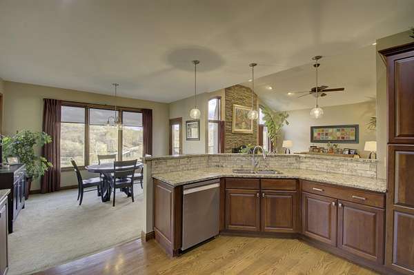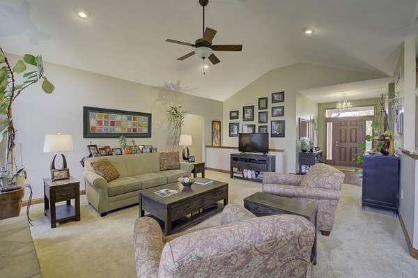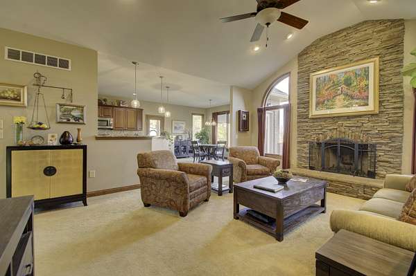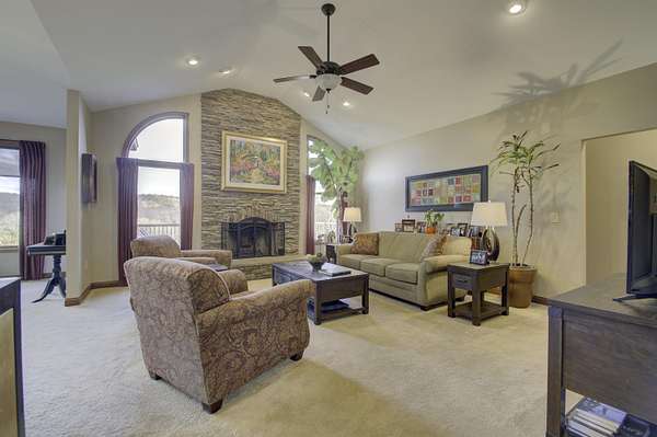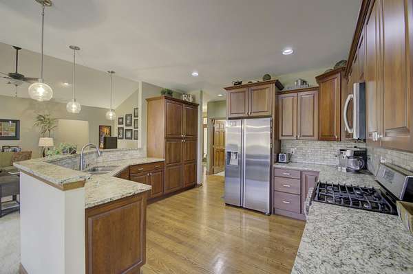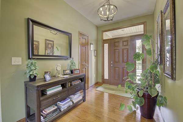 - Cathedral Ceiling(s), Ceiling Fan(s), Chandelier, Double Vanity, Eat-In Kitchen, Entrance Foyer, Granite Counters, High Ceilings, Multi Panel Doors, Natural Woodwork, Open Floorplan, Soaking Tub, Stone Counters, Walk-In Closet(s)