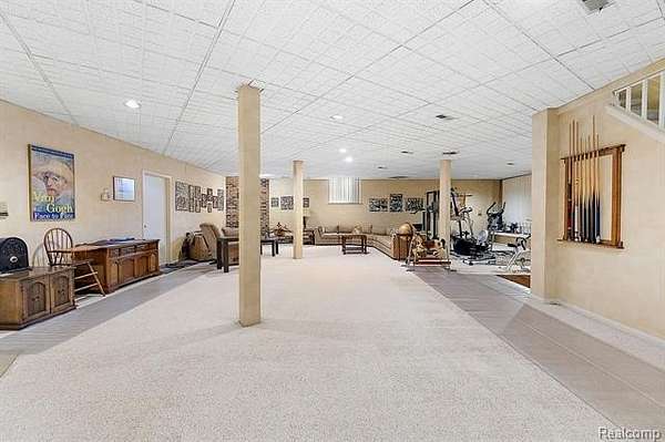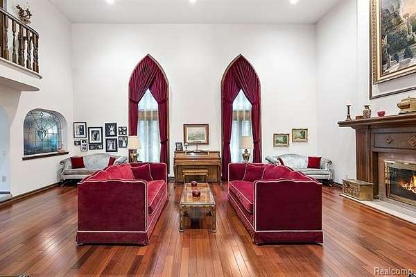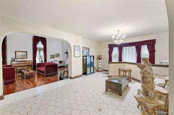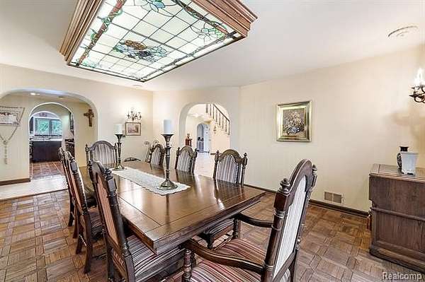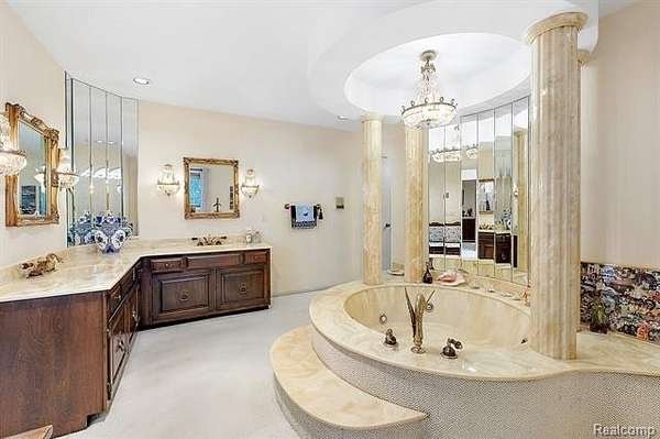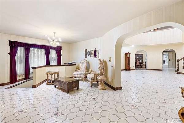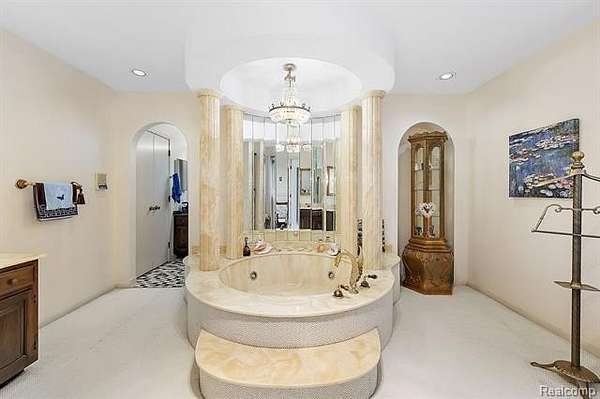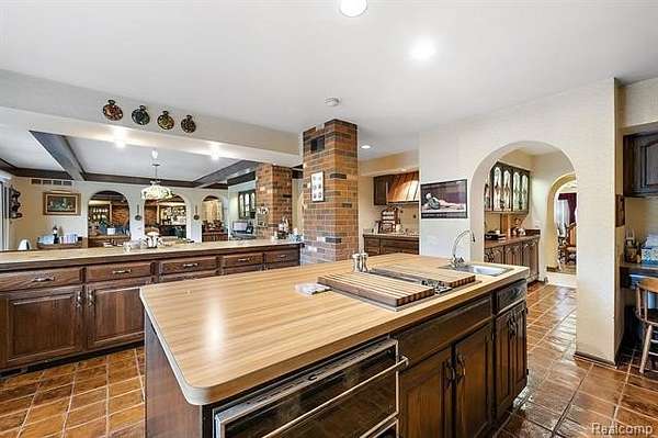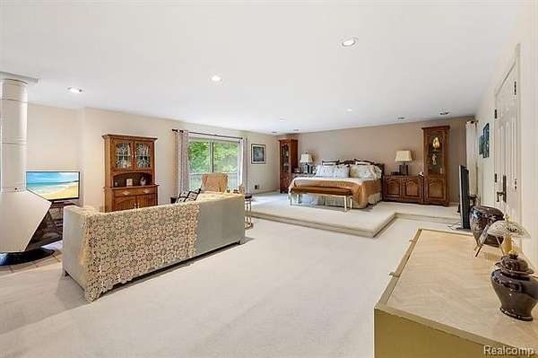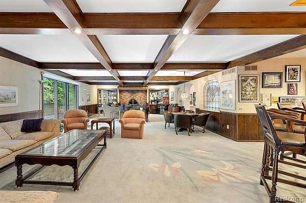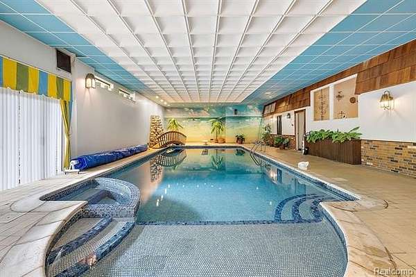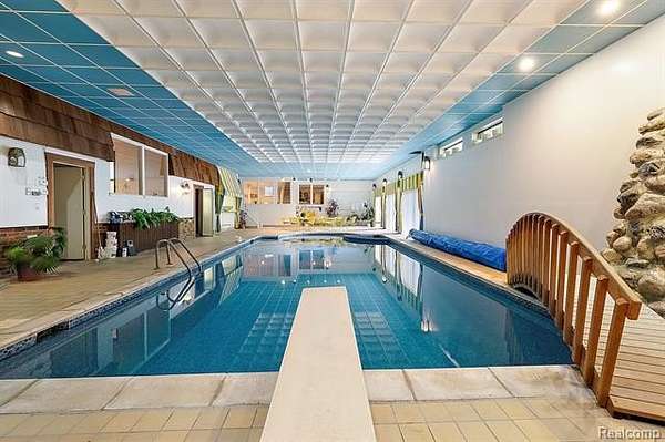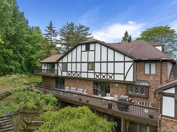 Welcome to this extraordinary custom-built Tudor estate in West Bloomfield's premier location with Birmingham Schools. This remarkable property boasts an indoor pool, a basketball court, and over 12,000 square feet of luxurious amenities, all situated on more than 2 acres. Enjoy proximity to numerous shops, restaurants, and convenience stores. Upon entering, you are greeted by a stunning high-ceiling foyer with 2-grand staircases, leading to expansive rooms featuring bars, fireplaces, and various entertaining spaces. The main level offers an updated living room with a Juliet balcony, large windows for abundant natural light, and access to a spacious family room with a cozy fireplace and a walk-out balcony overlooking the grounds. The chef's gourmet kitchen is equipped with a large island, top-of-the-line appliances, sleek countertops, ample storage, and stylish island seating. The dining room impresses with its gorgeous ceilings, beautiful flooring, and striking design. Additional main-level features include two-bedroom suites, a mudroom, and access to the 4-car garage. Upstairs, discover five bedrooms, including a large custom-designed primary suite with its own living space, fireplace, 2-closets, and luxurious bathroom suites. The additional four bedrooms offer large closets, elegant spaces, and multiple baths. The lower level is an entertainer's dream, featuring a beautiful landing space with a bar, an indoor basketball court, and a versatile space. The indoor oasis pool room is perfect for family and friends, complete with a full kitchen, sauna, and access to the rear grounds. Welcome home to a blend of luxury, comfort, and convenience in this magnificent estate.