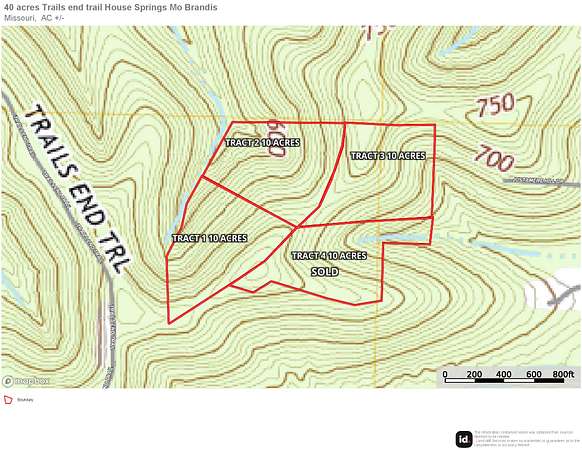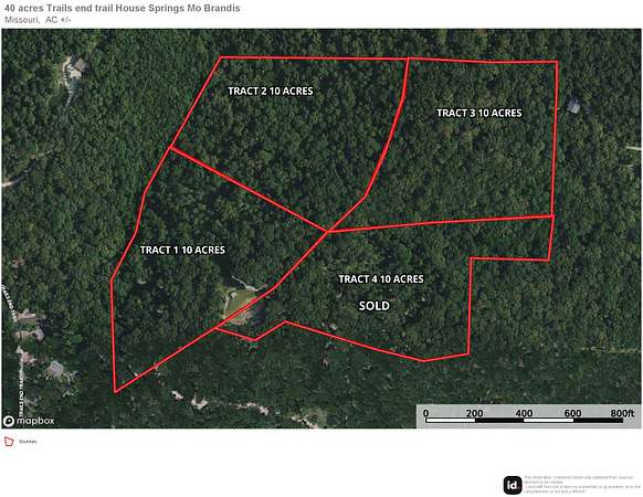This 10-acre tract in House Springs, MO offers the perfect mix of seclusion and convenience. Nestled at the end of a private trail, the property boasts breathtaking views of the bottomland below and is just minutes from Highway 30--making for a quick and easy commute to St. Louis. A true outdoorsman's paradise, the land is loaded with whitetail deer and wild turkeys, and is surrounded by larger tracts and landowners, keeping traffic minimal and wildlife plentiful. Whether you're looking to build your dream home, create a private hunting retreat, or simply enjoy a peaceful weekend getaway, this property checks all the boxes. Proof of funds or bank letter to be provided to agent to come take a look today! Multiple 10 acre tracts available or buy the entire 40 acres.