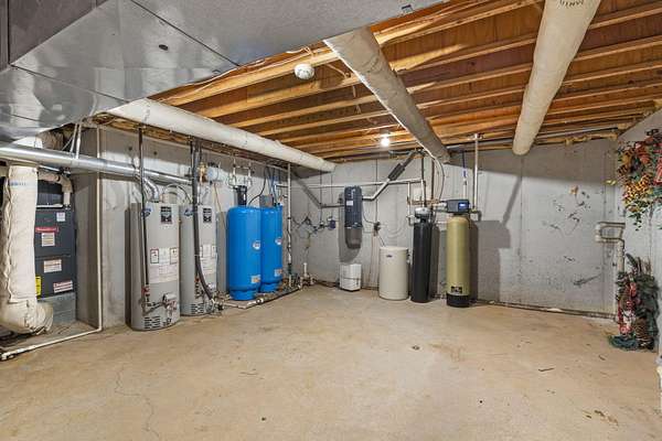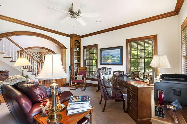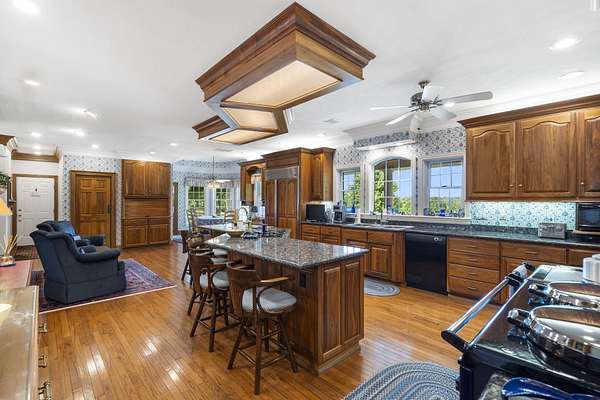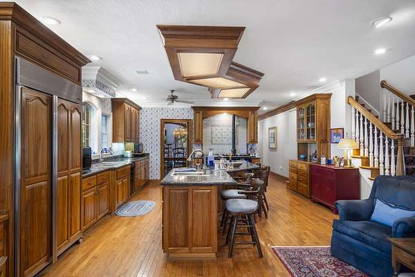 Welcome to a truly exceptional property offering refined living on 14.57 private, gated acres in Springfield. This meticulously maintained custom home blends timeless design with cutting-edge convenience and thoughtful craftsmanship throughout. Offering four spacious bedrooms, three full baths, two half baths, and a separate office, the layout is perfect for both everyday comfort and upscale entertaining. The main level showcases crown molding, extensive walnut built-ins, and a stunning cathedral-ceiling master suite. The chef's kitchen is a standout, featuring custom walnut cabinetry, an AGA stove, Sub-Zero refrigerator (2022), a walk-in pantry with a secondary fridge (2008), and instant hot water at your fingertips. Relax in the conditioned sunroom or gather in the main-floor family room, complete with a pool table, wet bar, and one of two cozy gas fireplaces. Two full guest suites upstairs provide privacy and comfort for family or visitors, and a walk-in attic offers additional accessible storage. Smart home features include a Control4 automation system and an integrated speaker system by SCS Home Entertainment. The home is also equipped with a natural gas generator, central vacuum, two high-efficiency furnaces with electric air filters, two hot water heaters, a new reverse osmosis system (2024), sump pump, and a water softener. The partially finished basement provides ideal space for storm protection and additional storage. Exterior features include a secure gated entrance, Andersen windows and doors, lawn irrigation, and a built-in safe in the garage. A 24x30 Morton building, built in 2006, includes a 10-foot overhead door, concrete floor, and electricity--perfect for hobbies, vehicles, or workshop use. The Asko washer and dryer (2019) and the walnut entertainment center are included with the home. This is a rare opportunity to own a gated country estate that combines luxury, technology, and functionality--all just minutes from Springfield amenities.