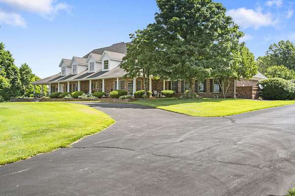 Welcome to a truly exceptional property offering refined living on 14.57 private, gated acres in Springfield. This meticulously maintained custom home features timeless design with convenience and thoughtful craftsmanship throughout. Offering four spacious bedrooms, three full baths, two half baths, and a separate office, the layout is perfect for both everyday comfort and upscale entertaining. The main level showcases crown molding, extensive walnut built-ins, and a stunning cathedral-ceiling master suite. The chef's kitchen is a standout, featuring custom walnut cabinetry, an AGA stove, Sub-Zero refrigerator (2022), a walk-in pantry with a secondary fridge (2008), and instant hot water at your fingertips. Relax in the conditioned sunroom or gather in the main-floor family room, complete with a pool table, wet bar, and one of two cozy gas fireplaces. Two full guest suites upstairs provide privacy and comfort for family or visitors, and a walk-in attic offers additional accessible storage. Smart home features include a Control4 automation system and an integrated speaker system by SCS Home Entertainment. The home is also equipped with a natural gas generator, central vacuum, two high-efficiency furnaces with electric air filters, two hot water heaters, a new reverse osmosis system (2024), sump pump, and a water softener. The partially finished basement provides ideal space for storm protection and additional storage. Exterior features include a secure gated entrance, Andersen windows and doors, lawn irrigation, and a built-in safe in the garage. A 24x30 Morton building, built in 2006, includes a 10-foot overhead door, concrete floor, and electricity, perfect for hobbies, vehicles, or workshop use. The Asko washer and dryer (2019) and the walnut entertainment center are included with the home. This is a rare opportunity to own a gated country estate that combines luxury, technology, and functionality all just minutes from Springfield amenities.