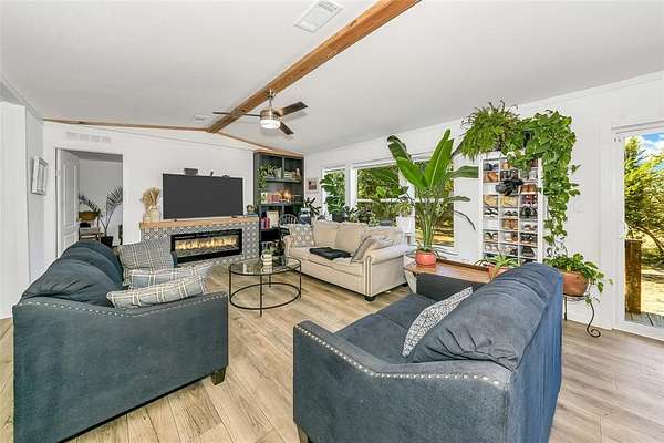 Discover your private 5-acre retreat at the end of a quiet country road, about a mile from the main road. The gated entrance sits all the way at the end, offering unmatched privacy and seclusion surrounded by mature trees. This property provides true peace and the freedom of country living with no restrictions. Fully fenced and ready for horses, gardening, or building anything you desire, the land is both functional and full of opportunity. The main residence is a stunning, energy-efficient 2,112 sq. ft. manufactured home built in 2024, featuring modern finishes, open living spaces, and a thoughtful layout. The primary suite includes a double-sink vanity, freestanding tub, separate shower, and a massive 16-by-6-foot walk-in closet. A spacious laundry room adds convenience to everyday living. Just steps away, the versatile guest house offers excellent potential for long-term or short-term rental income. Currently used as a fully equipped gym with two lofts, it can easily be converted back into a comfortable private guest suite or rental unit. The 625 sq. ft. metal workshop is powered and already has a water line installed--just add a hose bib if desired. This flexible space is perfect for hobbies, storage, business use, or could even be converted into another income-producing area. The property also includes two RV hookups, creating additional options for visiting family, friends, or even generating extra income by hosting campers or RV users. With a private well, no HOA, and no restrictions, the possibilities are endless--ideal for multi-generational living, investment, or those seeking a peaceful homestead with room to grow. Despite its secluded setting, you'll enjoy quick access to Weatherford, Azle, and Fort Worth for shopping, dining, and commuting. Don't miss this rare opportunity to own a versatile property that perfectly blends privacy, potential, and modern country comfort.
