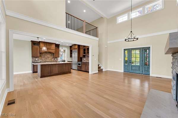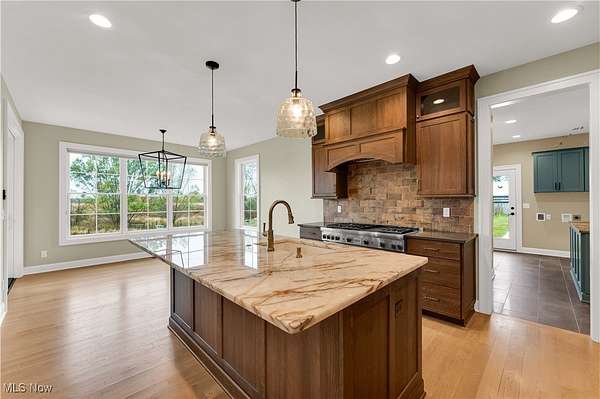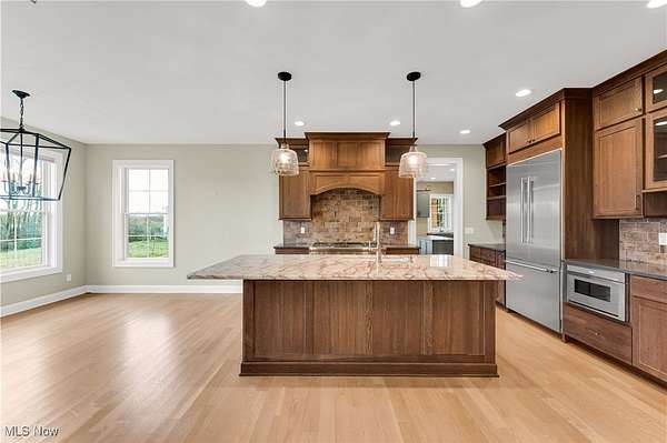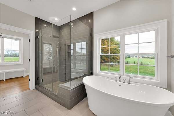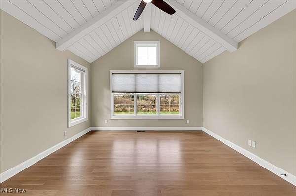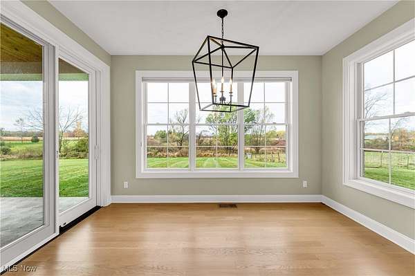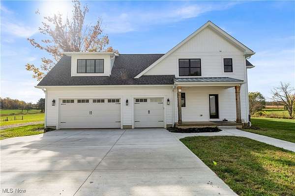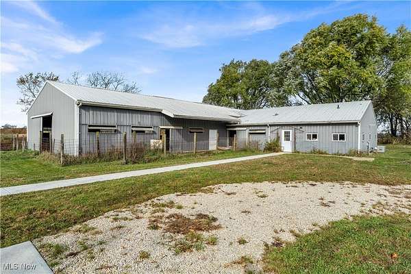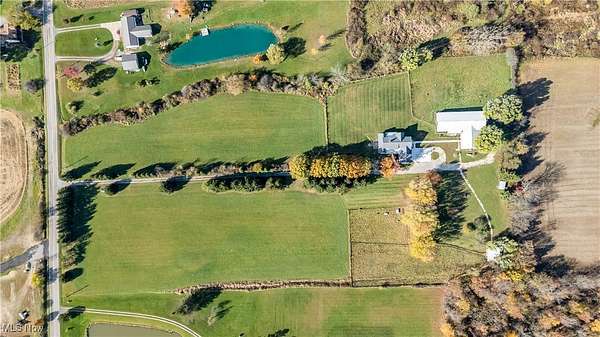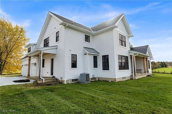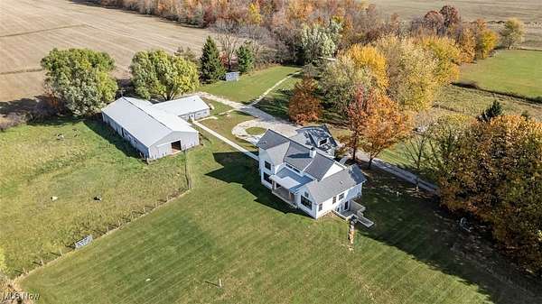 A must see 3-year-old like new architectural designed 4278 sq ft home located on 11.03 acres. This quality custom-built home with open floor plan will exceed any expectations of what an executive house should be. The gourmet kitchen features Granite and Corian countertops, a huge island, stainless steel Thermador appliances, white oak floors and custom cabinets. 9 ft ceilings are common throughout the home but the large great room with stone wood burning fireplace has 18 ft ceilings that add a wow factor to the home. Large Pella windows throughout the home allow in plenty of natural light and stunning framed views of the property. The master suit has vaulted white wood ceilings, stunning views, a custom finished walk-in closet, and a spa-like bath. On the upper floor there are 2 bedrooms that share a Jack & Jill bathroom, a loft, 2nd laundry, and finished bonus room. The walk-out lower level is also finished with its own patio, full bathroom, 1-2 bedrooms, family room, garage stairwell access and plenty of open room. As you enter the 1st floor the finished mud/laundry room has tile floor, large pantry, full bathroom, and custom cabinets. This 11 acre property is ideal for horses or other hobby-farm projects with fenced pastures and 5 open acres of alfalfa mix hay. The clear span 40x100 barn could also be an indoor riding area. The barn was initially run as a certified Grade B goat dairy and continued with registered stock. This included a separate heated and cooled area, water, electric with separate septic, a full bathroom, kitchen area and rooms that could be for farmhands/guests. After a long day sit on one of the porches or patios overlooking the scenic property and relax in quiet tranquility. Located just 9 miles south of Wellington it is close to all major highways and is only a 45 minute drive to Cleveland Hopkins Airport. The highly rated Rural school districts are a great place to raise a family with lots of student activities.